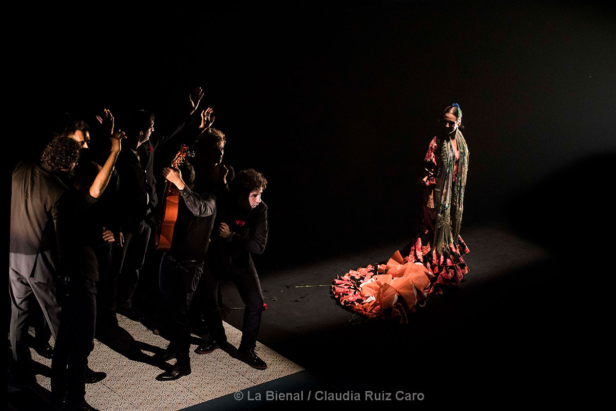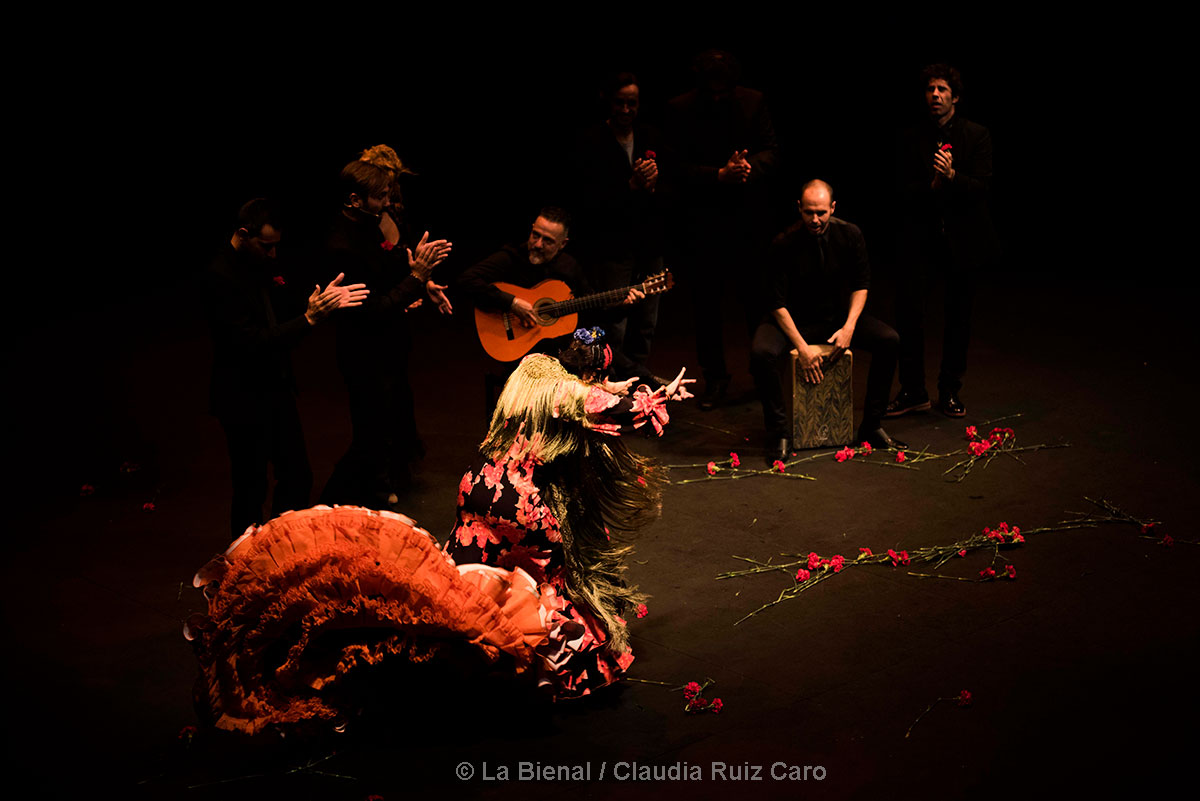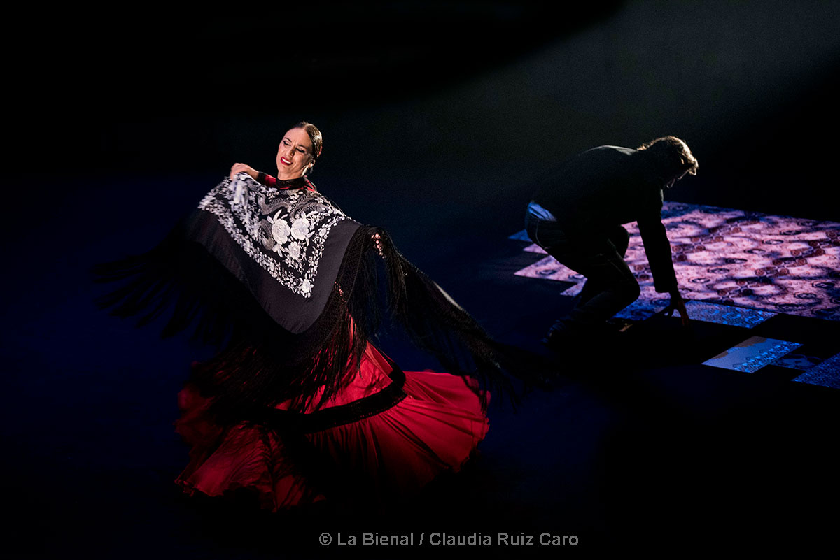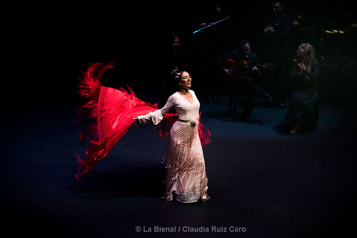 Galería fotográfica del espectáculo «Oro sobre azul» que Anabel Veloso estrenó en La Bienal de Flamenco de Sevilla, Teatro Central 10 de septiembre 2020. Fotos: Claudia Ruiz Caro
