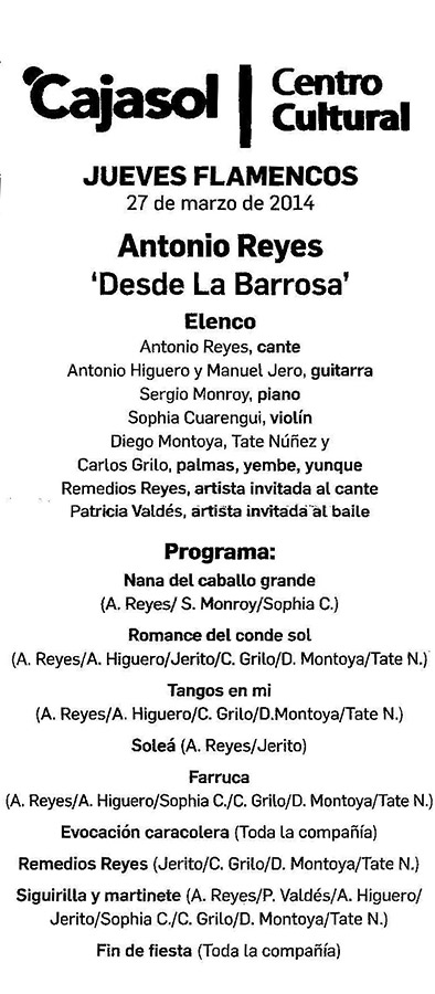 Galeria fotográfica Antonio Reyes «Desde la Barrosa» en el Centro Cultural Cajasol de Sevilla. Jueves Flamencos 27 de marzo 2014.