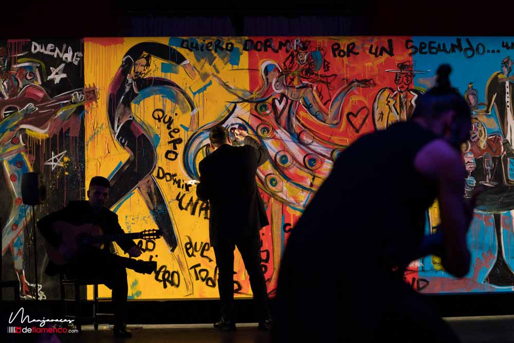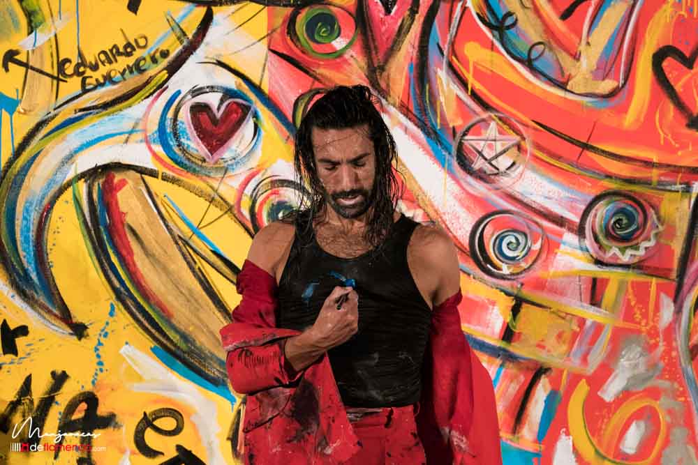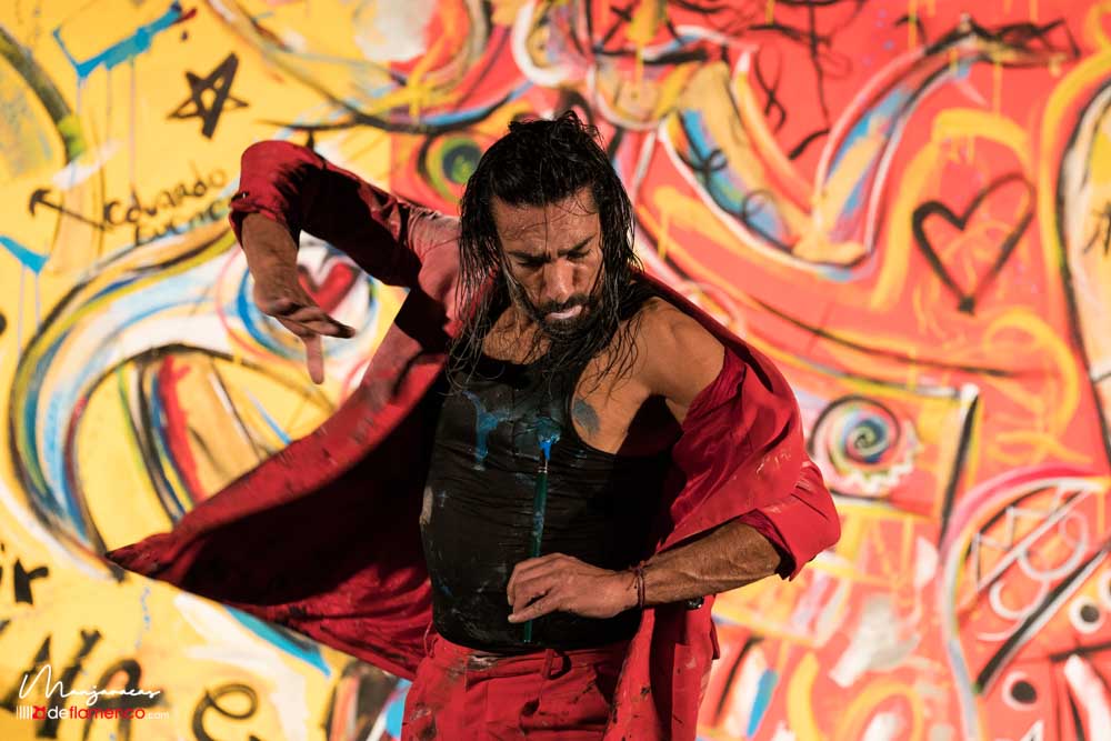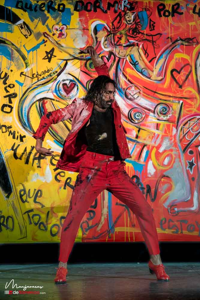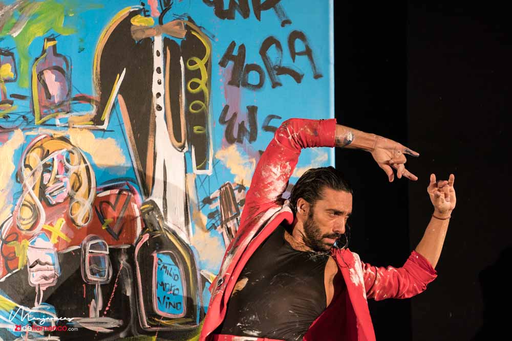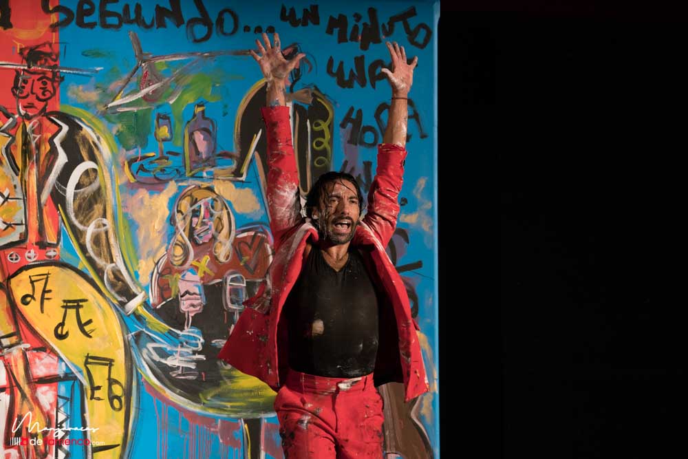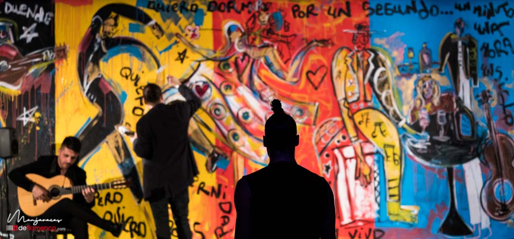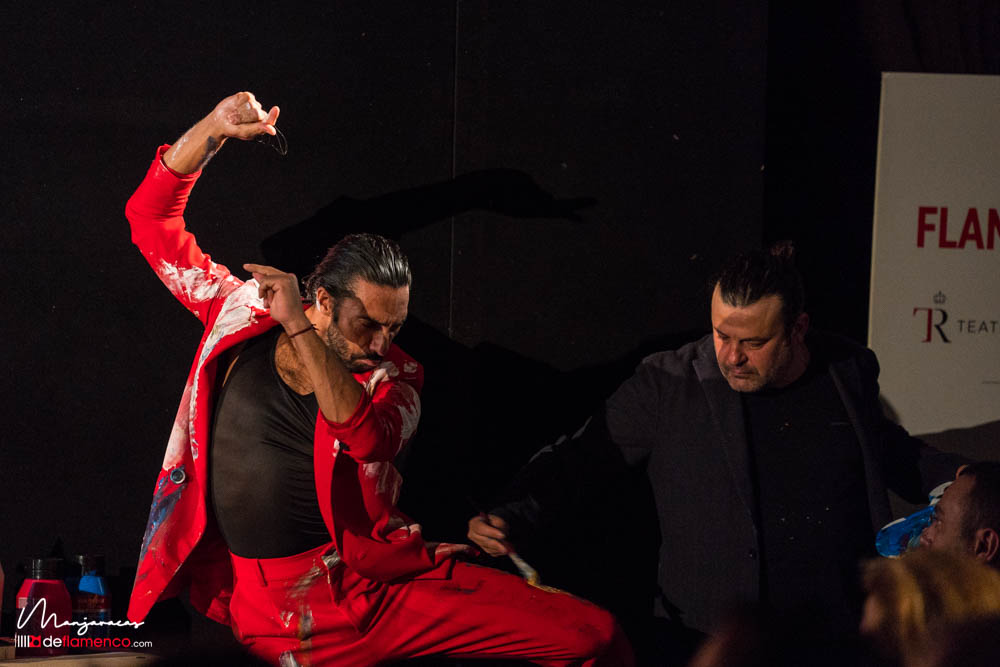Bajo el título de «Desplante», el bailaor gaditano Eduardo Guerrero, premio «Desplante flamenco» en el Cante de las Minas del año 2013 desafía al artista Domingo Zapata en el Salón de Baile del Teatro Real dentro del ciclo Flamenco Real. En la tarde del viernes 17 de enero, durante los ensayos y preparación del espectáculo Domingo Zapata comenzó a pintar un mural de 6×3 metros y que remató -incluyendo al traje y cuerpo del bailaor- durante la celebración del propio espectáculo que sirvió de escenografía única para el baile picassiano de Guerrero, bien acompañado al cante por Manu Soto y con la guitarra de Javier Ibáñez. Os dejamos una galería fotográfica del espectáculo y un video del mismo.