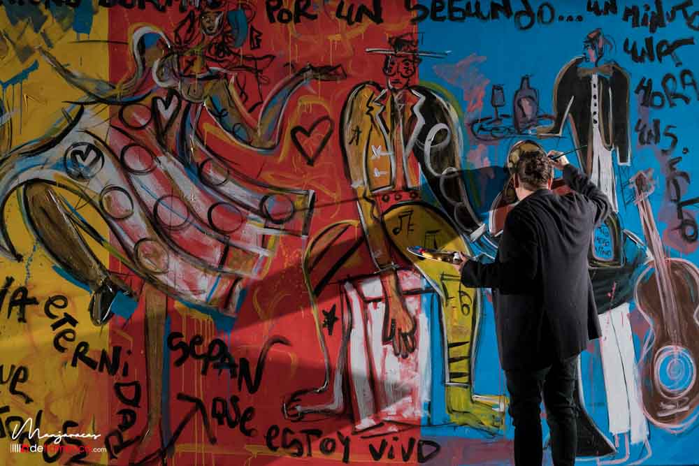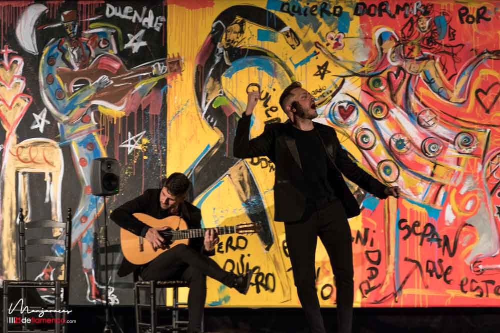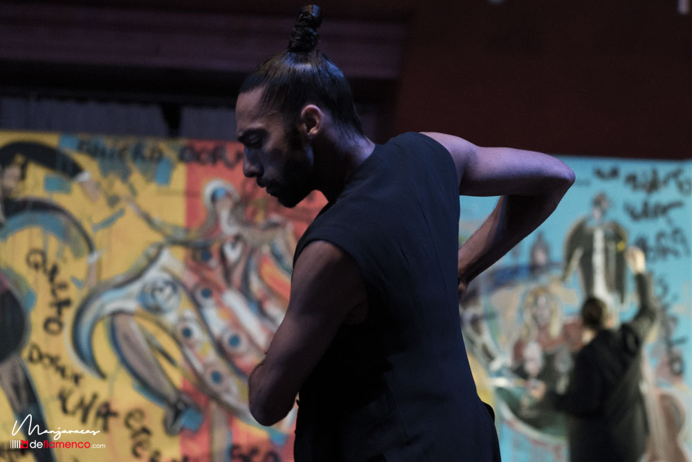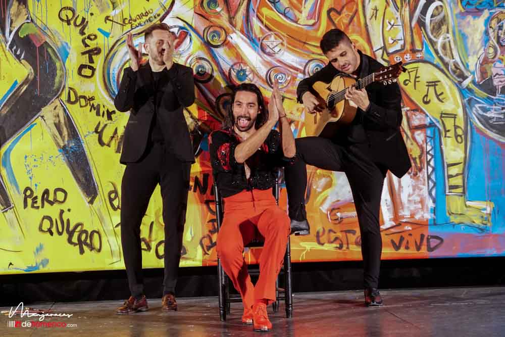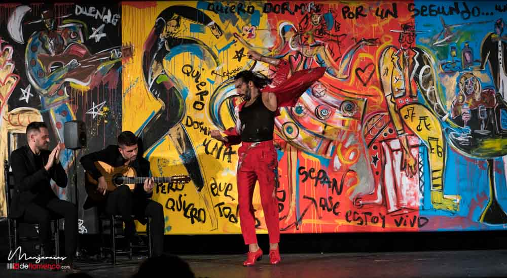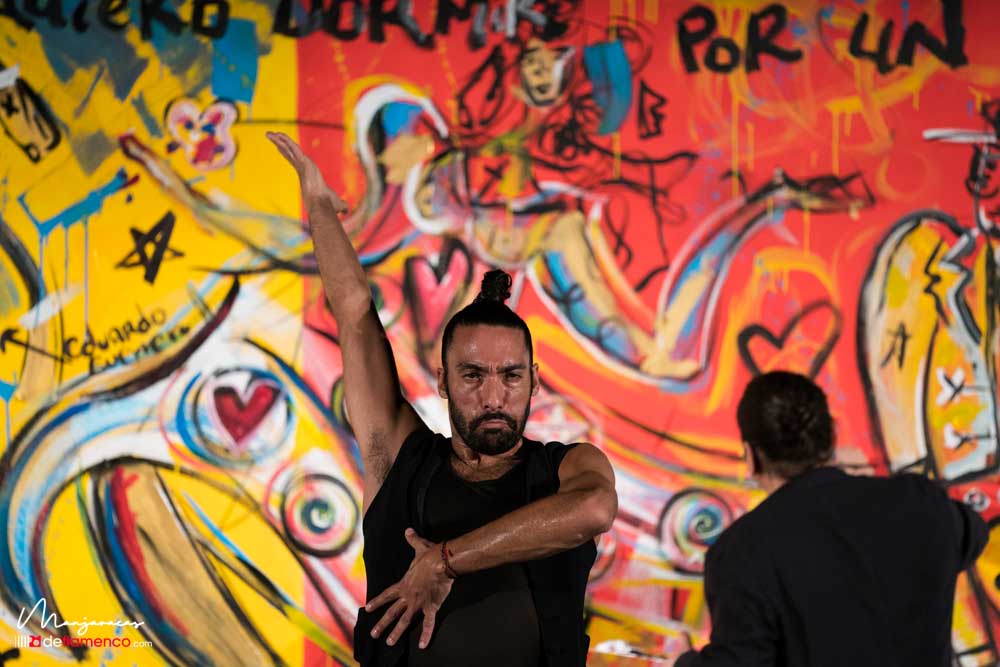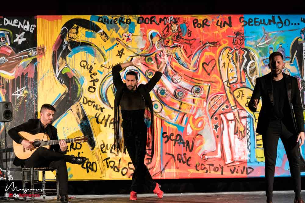 Bajo el título de «Desplante», el bailaor gaditano Eduardo Guerrero, premio «Desplante flamenco» en el Cante de las Minas del año 2013 desafía al artista Domingo Zapata en el Salón de Baile del Teatro Real dentro del ciclo Flamenco Real. En la tarde del viernes 17 de enero, durante los ensayos y preparación del espectáculo Domingo Zapata comenzó a pintar un mural de 6×3 metros y que remató -incluyendo al traje y cuerpo del bailaor- durante la celebración del propio espectáculo que sirvió de escenografía única para el baile picassiano de Guerrero, bien acompañado al cante por Manu Soto y con la guitarra de Javier Ibáñez. Os dejamos una galería fotográfica del espectáculo y un video del mismo.