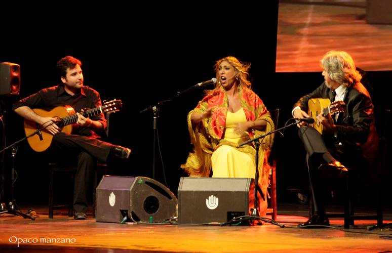 ESPERANZA FERNÁNDEZ en Pirineos Sur con Eduardo Trassierra y Miguel Ángel Cortes guitarras flamencas, José Fernández y Jorge Pérez percusiones