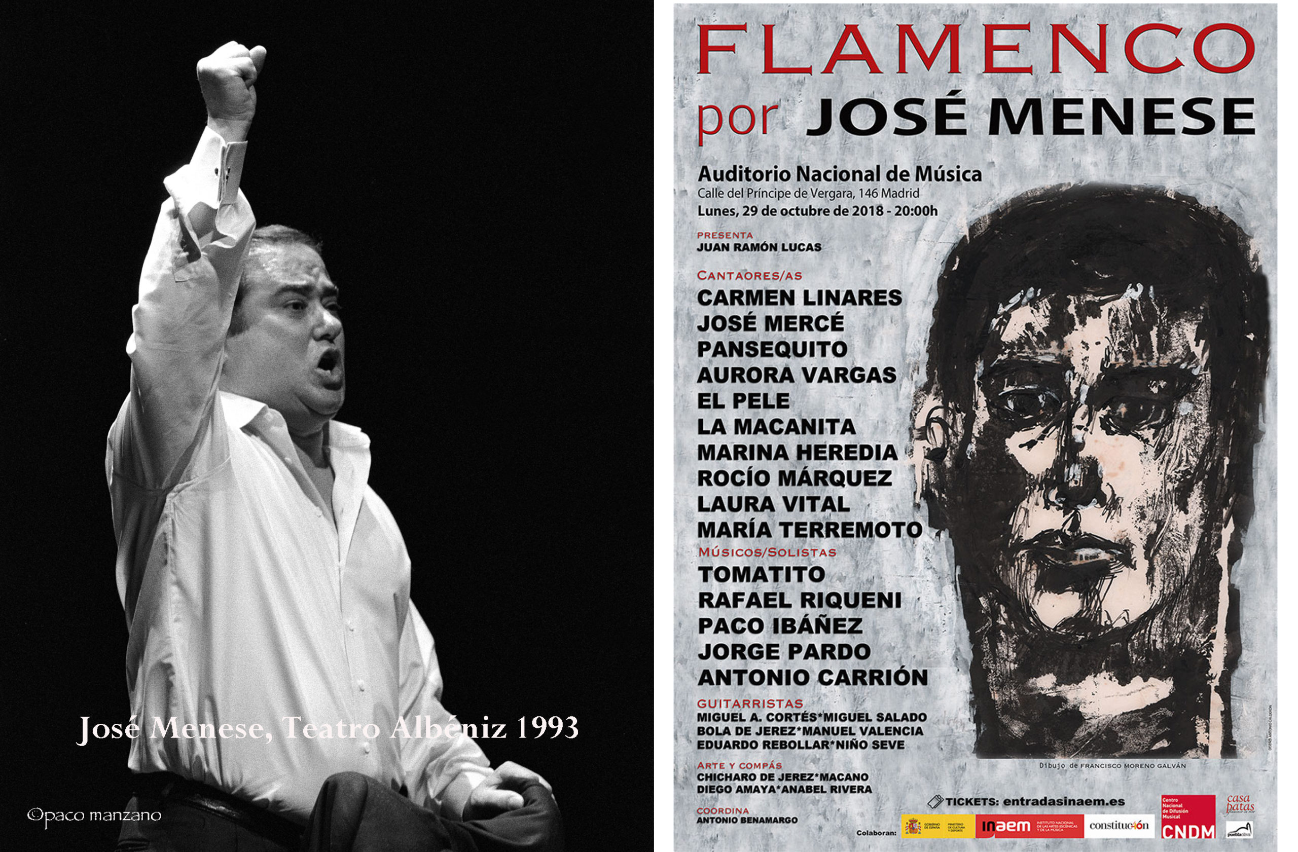 ¡Vamos a acordarnos! Y así fue, en la Sala Sinfónica de un Auditorio Nacional a rebosar, el lunes 29 de octubre, con una gran representación artística del flamenco y del mundo de la cultura y la sociedad, vinculados de alguna u otra forma con el cantaor morisco José Menese Scott le homenajearon en presencia de su familia y numerosos amigos, muchos de ellos venidos de La Puebla de Cazalla.