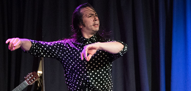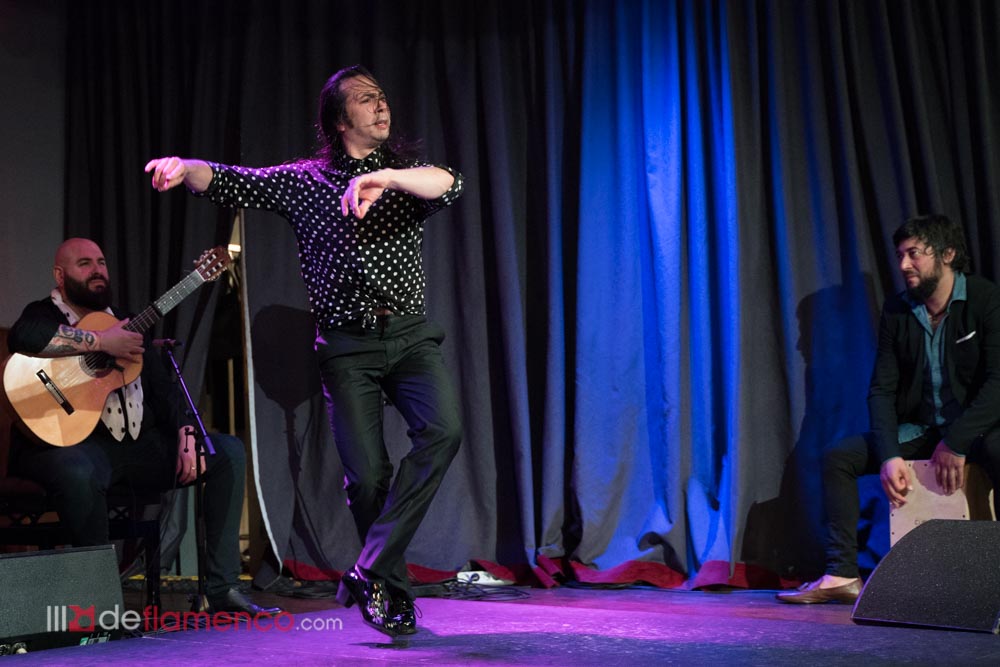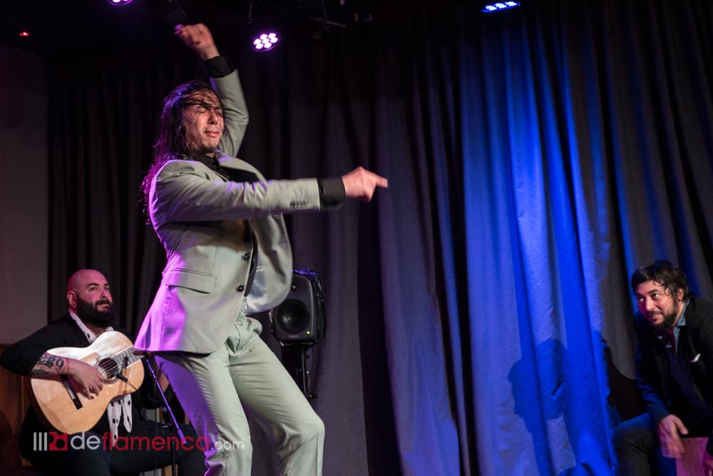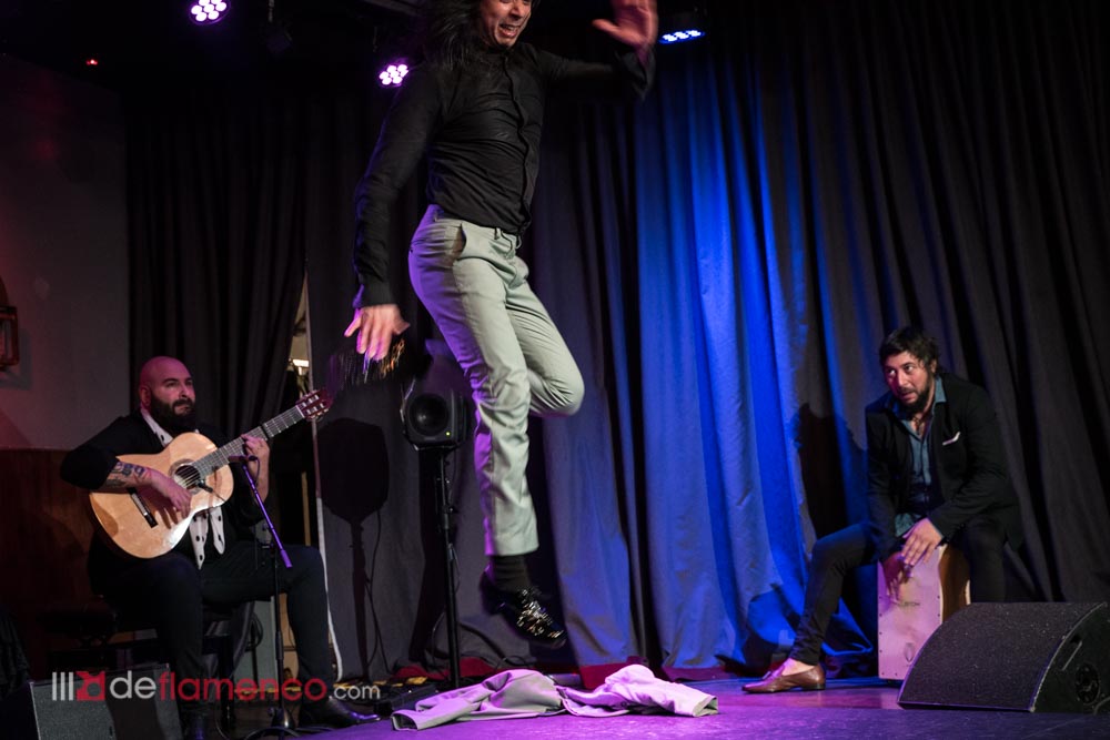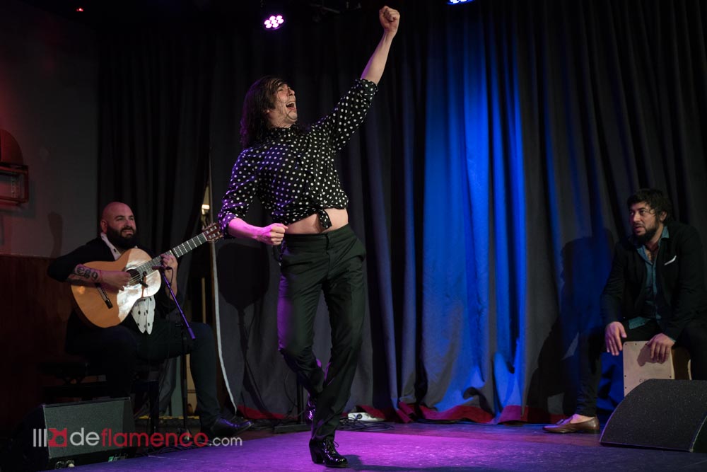 El bailaor José Maya en el Café Berlín de Madrid. Con Bandolero en la percusión, María Mezcle y Manuel Tañe al cante y Pino Losada en la guitarra. 10 mayo 2019.