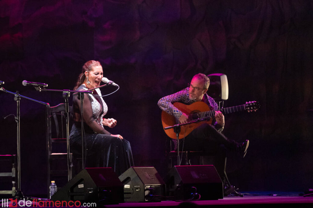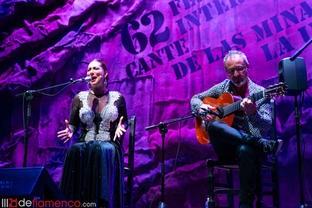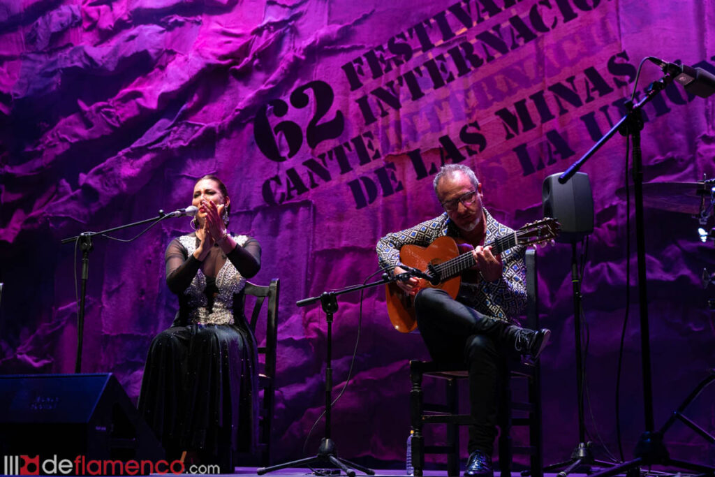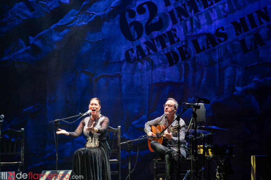 Tenía ganas de volver a La Unión y se le notó. Once años después de su última actuación, que compartió con Arcángel, su elegancia impregnó el lugar en una exhibición de cómo fusionar a la perfección técnica, calidad artística y puro sentimiento. No tardó mucho en mostrarse en el formato más desnudo, guitarra y voz, acompañada de la maestría del gaditano José Quevedo ‘Bolita’, con una milonga en homenaje a las madres. Fue cantando por Levante cuando lanzó el primer guiño de la noche a las mujeres que abrieron los caminos del cante: Encarnación Fernández, a quien incluso le dedicó un cante en uno de sus discos. Con un “Encarnación, va pa’ ti” comenzó la minera, entonando ese ‘Quiero hacer fuerza y no puedo’ que tantas veces se ha oído en la voz de la doble ‘Lámpara Minera’.