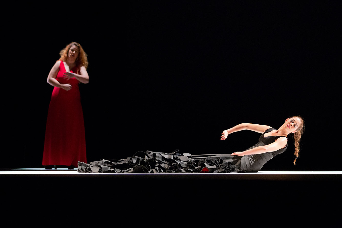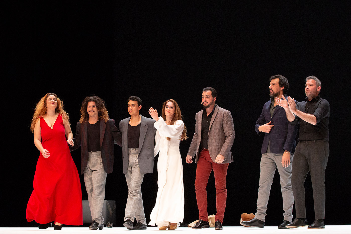 Fotografías del espectáculo de la bailaora Patricia Guerrero «Distopía» que presentó en el 30 Festival Flamenco de Nimes con Dani de Morón guitarra, José Manuel Posada «Popo» bajo y contrabajo, Agustión Diassera percusión, Alicia Naranjo cante lirico, Ángel Fariña baile y Rodrigo García baile. 14 enero 2020. THÉÂTRE BERNADETTE LAFONT. Fotografías de Sandy Korzekwa.