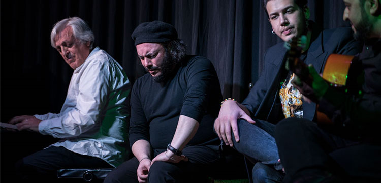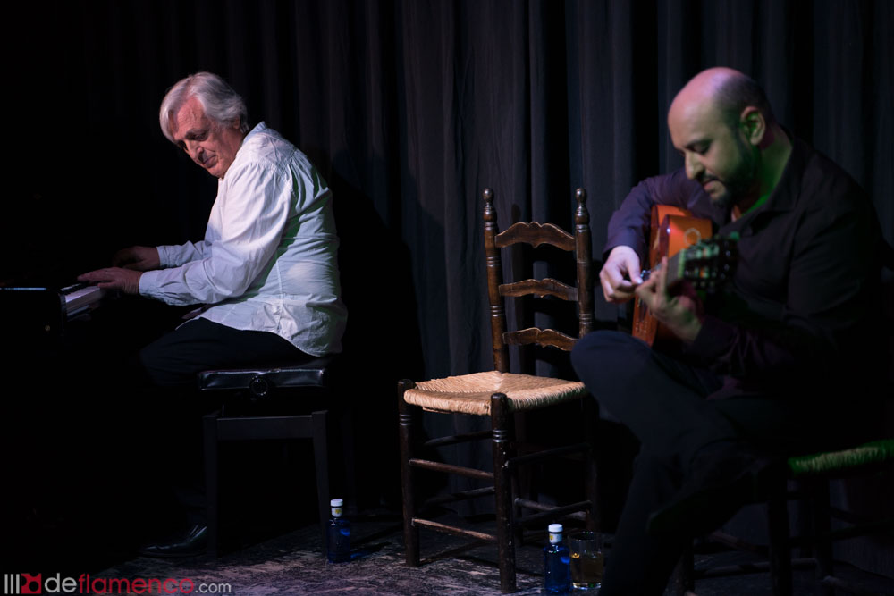 El músico de Flamenco & Jazz Pedro Ojesto tocó en la Sala García Lorca de Madrid dentro del ciclo Flamenco en la Frontera 2019. Acompañado al cante por Ingueta y a la guitarra por Mario Montoya. 16 febrero 2019.