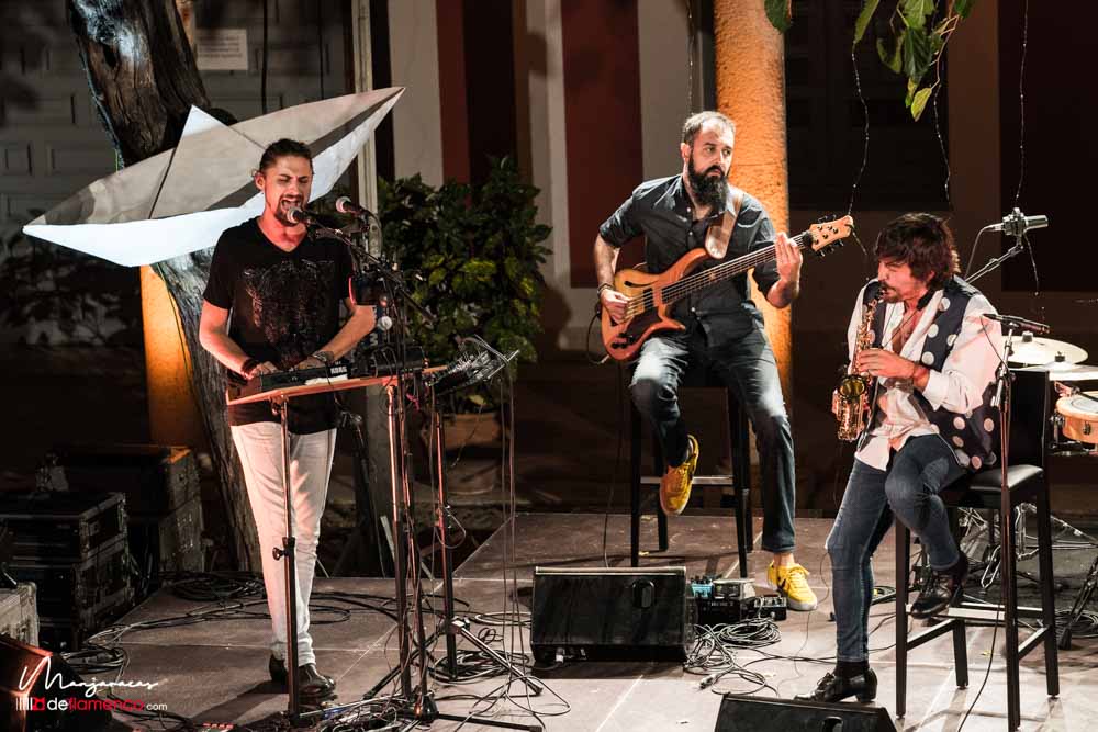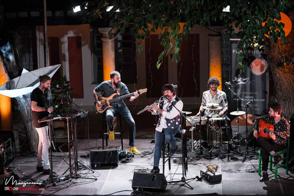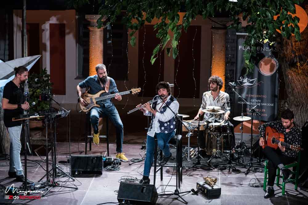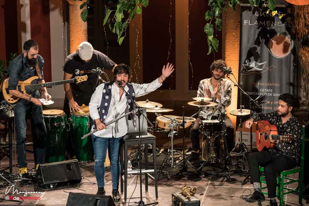 Fotografías & videos de la actuación de Sergio de Lope & band en los Encuentros Lunas Flamencas de Getafe, sábado 28 septiembre 2019. Hospitalillo de San José. Sergio de Lope con El Mati voz, Juan Fe Pérez bajo, Javier Rabadán percusión, David Caro guitarra.