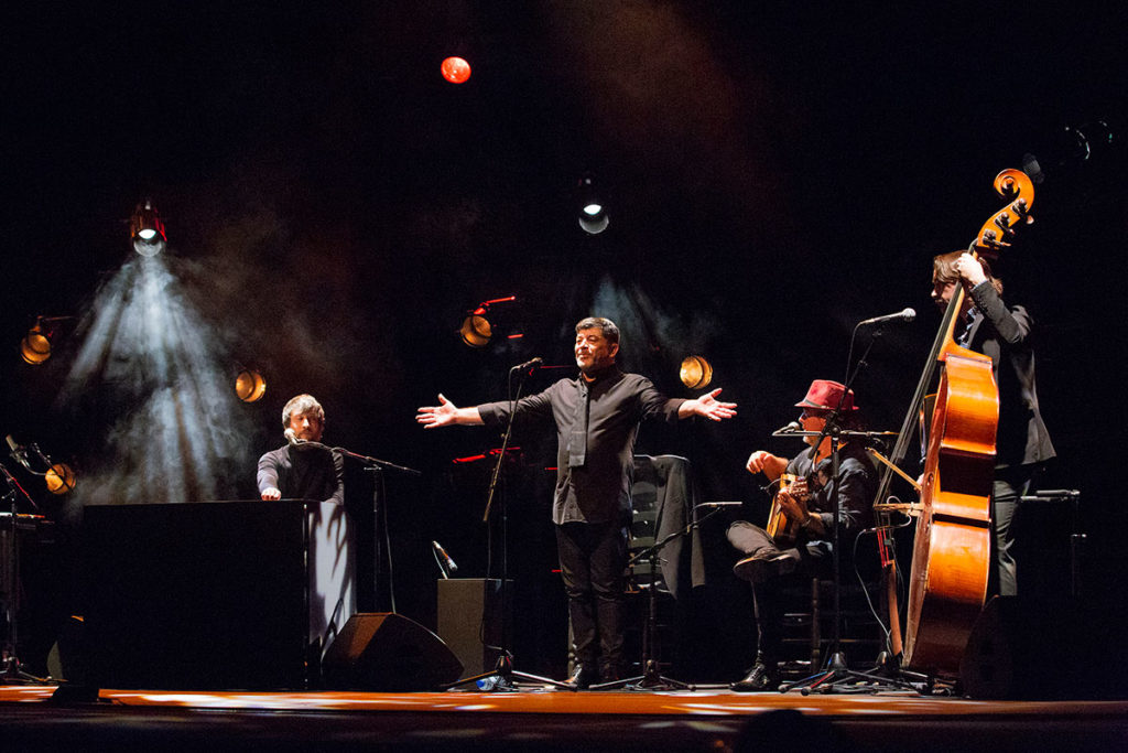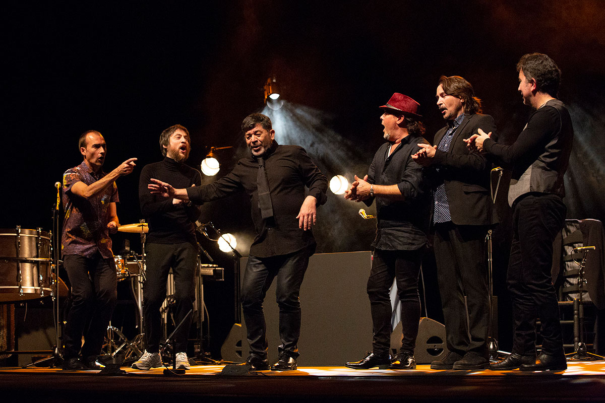 Fotografías del espectáculo «Tres golpes» de Tomás de Perrate & Raül Refree en el Festival Flamenco Nîmes, con Alfredo Lagos y Paco de Amparo guitarra, Miguel Ángel Cordero bajo y contrabajo, Antonio Moreno percusiones. Sábado 11 enero 2020 en Théâtre Bernadette Lafont. Fotografías Sandy Korzekwa