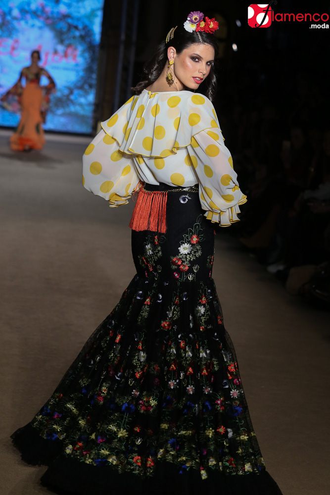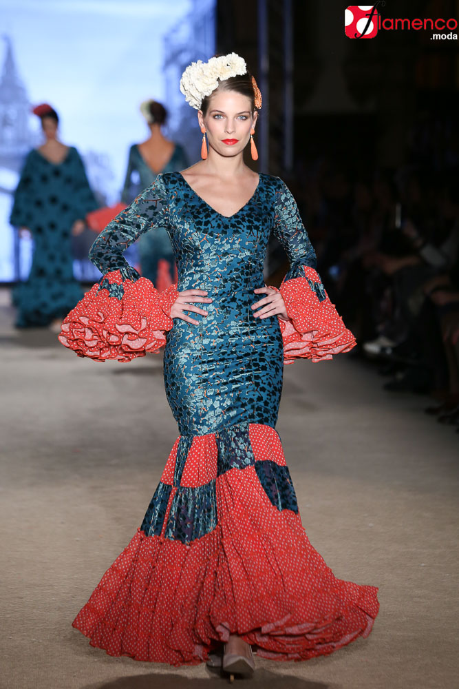 “Nuestra nueva colección flamenca nace de un sentimiento abrumador e inolvidable que surge de una mujer durante un encuentro ambientado en la Sevilla de los 80, en la que ésta, de procedencia italiana, descubre nuestra ciudad y queda enamorada del arte flamenco y de su folclore”, explican, después de abandonar los tonos dulces y románticos de temporadas pasadas, por otros más contundentes y vibrantes como el amarillo lima o el azul añil.