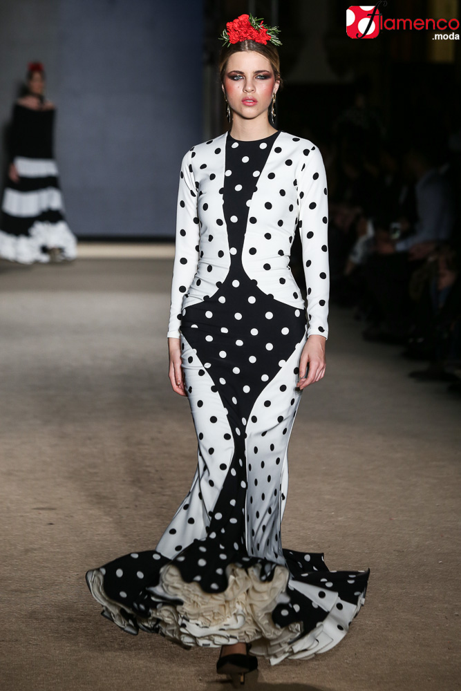 Flamenca Pol Núñez ha sorprendido sobremanera con su nueva colección, y es que ‘Sorprendentemente flamenca’ ha sido el nombre con el que la diseñadora Delia Núñez ha bautizado sus diseños para esta temporada. “Me voy poco a poco encerrando en mi taller, en mi misma, aislándome de casi todo; sin saber muy bien que quiero y con los ‘miedos’ lógicos de alguien que sigue creyendo que no todo está inventado, pero que lleva ya más de 25 años haciendo trajes de flamenca”, explica Delia, entre cuyas propuestas ha despuntado un chubasquero plagado de lunares que ha arrancado el aplauso de los presentes en el Salón Real del Hotel Alfonso XIII.