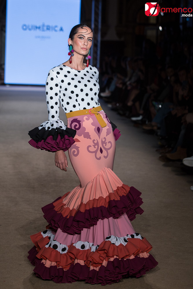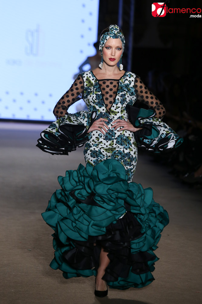 La ya emblemática Fabiola ha mostrado su colección para esta temporada, dedicada a la mecenas Cristina Heeren, quien tampoco ha querido perderse este desfile. “Tenía su fundación y escuela junto a mi casa y yo oía a diario zapateos y rasgueos de guitarra que me encantaban”, recuerda la diseñadora Fabiola, que ha creado con tejidos, en su mayoría, sedosos esta colección, en la que destacan los lunares de terciopelo. Con complementos y mantones exclusivos, ‘Mis sueños flamencos’ ha quedado redonda y llena de tonos verde agua, coral y fresa.