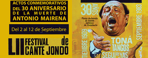 Del 2 al 12 de septiembre la ciudad de Mairena del Alcor rinde homenaje a D. Antonio Mairena con múltiples actos en torno a su figura. El Concurso Nacional de Cante Jondo y el Festival de Cante Jondo constituyen el acto central del homenaje.