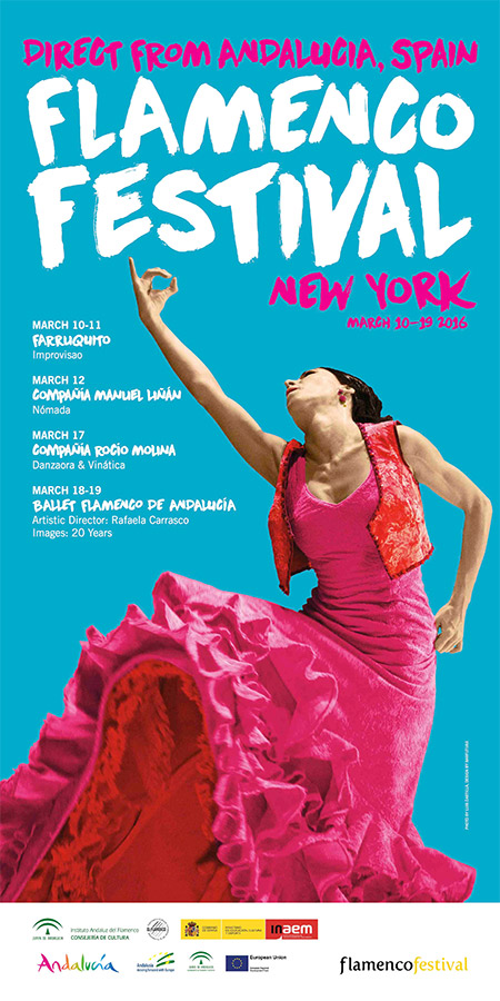 Flamenco Festival USA cuenta con el apoyo del Instituto Nacional de las Artes Escénicas y de la Música (INAEM) y Turismo de Andalucía, y con la colaboración de la Embajada de España en Washington DC. y el Consulado de España en Nueva York.