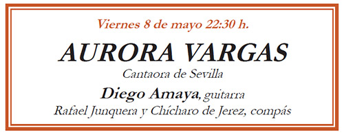 El viernes Aurora Vargas, el sábado Pansequito. En la Sala García Lorca de Madrid, de la Fundación Casa Patas, abriendo la programación del ciclo San Isidro Flamenco. Cante grande.
