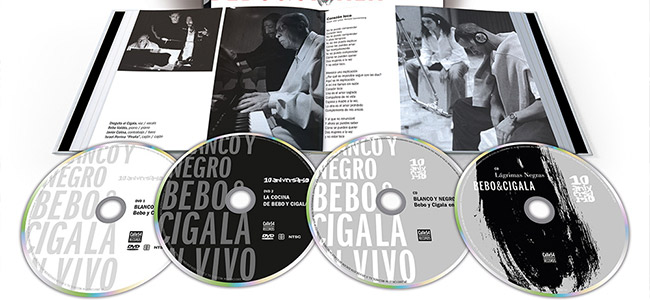 “Lágrimas Negras. Edición 10º Aniversario” has the format of a double CD and double DVD, accompanied by a 64-page book designed by Mariscal with nine photos, the words to the songs and texts in English and Spanish. The work includes the CD Lágrimas Negras and the CD and DVD versions of the live concert Black and White, originally recorded in audiovisual form. The package is completed with La Cocina de Bebo, a thrilling documentary that takes us to the historic collaboration of Bebo Valdés and Diego del Cigala with images that capture their first work session, the day they met, the rehearsals and the actual recording of the historic album.