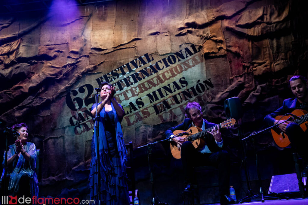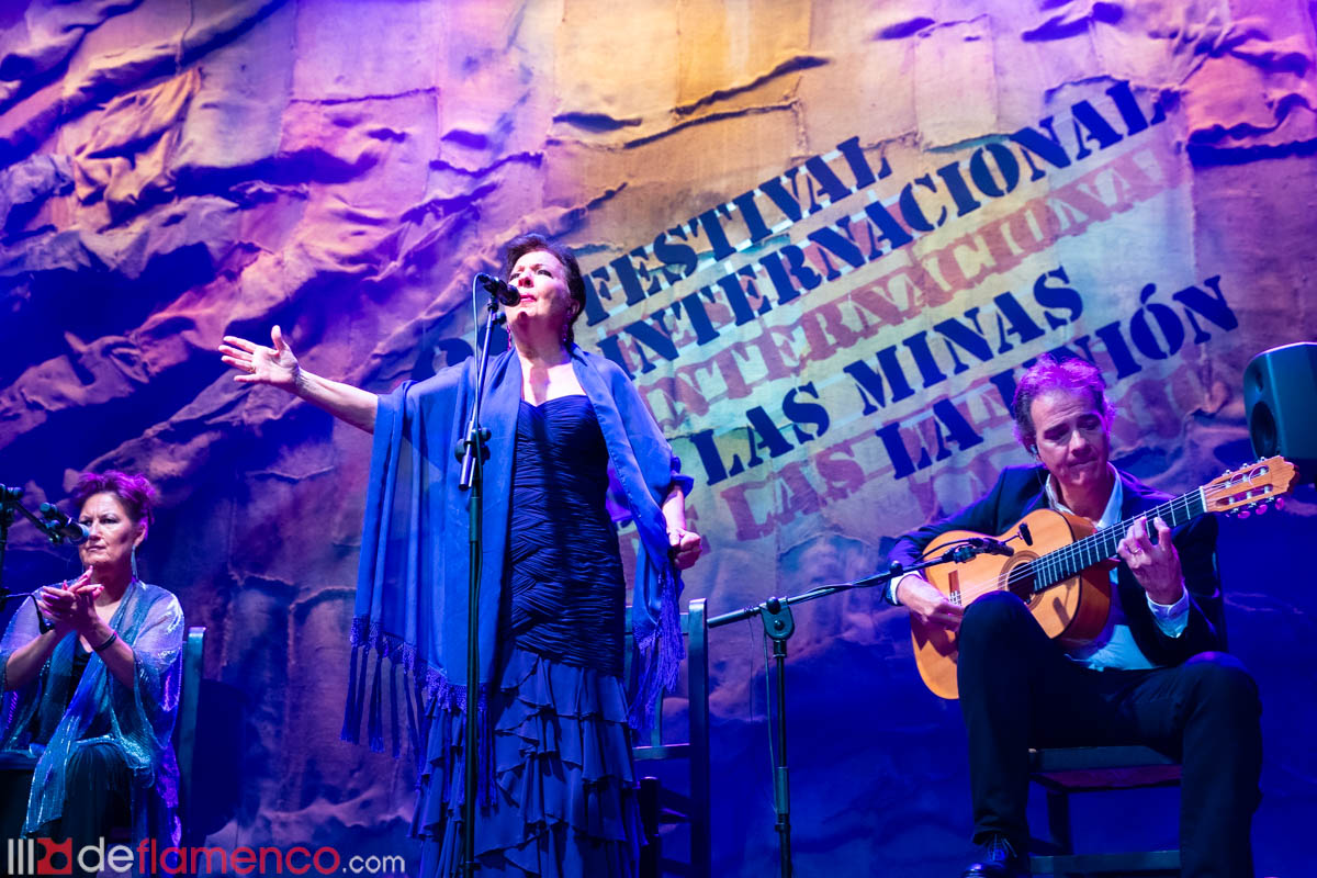 El jaleo de su gira ’40 años de flamenco’ empezó pronto por tangos de Granada, con ‘Cintas de color grana’, que enmudeció al público, expectante por contemplar a una de las máximas representantes del cante jondo. La cantaora, “agradecida y satisfecha de volver a La Unión”, quiso recordar lo más importante de su carrera, por eso su disco ‘Antología: la mujer en el cante’ estuvo muy presente, así como las letras de algunos de los poetas más destacados de nuestro país. Acompañada de Salvador Gutiérrez y Edu Espín a la guitarra, Pablo Suárez al piano, y Ana María González y Rosario Amador a las palmas y coros, siguió el recital acompañada solo por una guitarra, mostrando el formato más puro del flamenco, con ‘Andaluces de Jaén’, de su último trabajo, para dar paso a las cantiñas y uno de sus temas más afamados: ‘Toma este puñal dorao’.