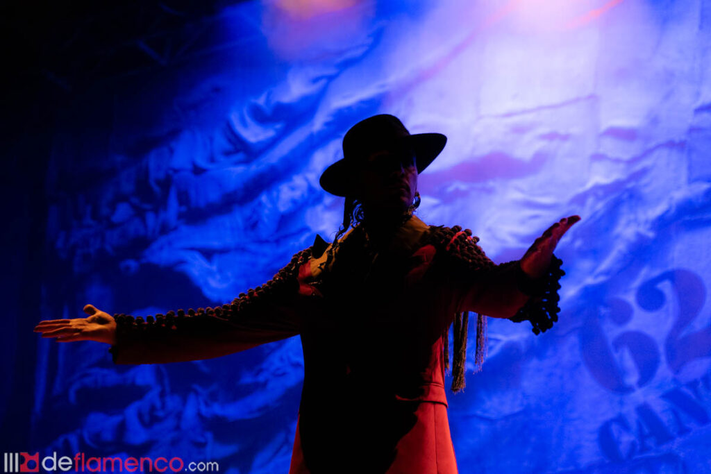 Una voz en off fue guiándole en su entrada al escenario, con una chaqueta de flecos que zarandeó con su movimiento, jugando con un sombrero y despertando el aplauso en varias ocasiones durante la siguiriya con la que se atrevió a abrir el show. El traje de luces vino después, un regalo del que siente como su hermano, el torero Alejandro Talavante, por granaína y tangos.