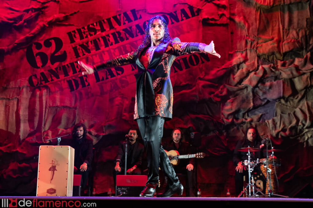 Su baile, que abrió la gala del domingo, fue una mezcla de pasado y presente, de tradición y vanguardia, atreviéndose a agitar los cimientos del baile flamenco, moviéndose como si volara con su taconeo por el escenario, con un vestuario que acompañó la impronta del joven bailaor. ‘Y tú’ fue una muestra clara de su virtuosismo y energía; una técnica basada en el baile más tradicional con una esencia propia muy característica.