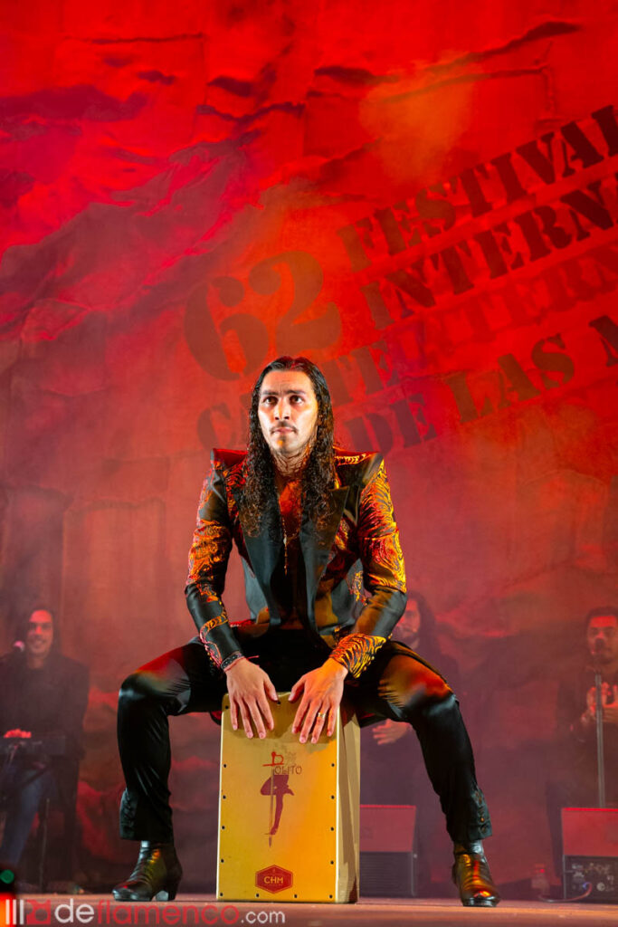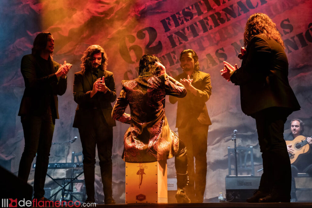 Cuando la ‘Catedral del Cante’ ya se había rendido a sus pies, se subió al cajón flamenco y bailó encima de él, haciéndolo sonar con sus manos después, arropado por las palmas de Manuel Lozano, Luis Amador, Juan Fernández, Ezequiel Montoya y Melchor Borja, que dejaron sus instrumentos para conquistar el centro del escenario y acercarse a un fin de fiesta que llegó entre alegrías y bulerías.