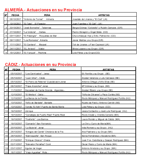 120 recitales flamencos -ochenta de cante y cuarenta de baile- que se celebrarán del 5 de octubre al 22 de diciembre en peñas flamencas de toda la comunidad autónoma, con el objetivo de promocionar a los jóvenes valores del flamenco y consolidar el tejido asociativo del flamenco en Andalucía. Se trata del primer circuito de estas características que se organiza en la comunidad y esta dedicado al guitarrista 'Melchor de Marchena' con motivo del centenario de su nacimiento.Romper la estacionalidad del flamenco, concentrado muchas veces en los meses de verano, promover a los nuevos valores, colaborar con el tejido asociativo del flamenco, y vertebrar los territorios de Andalucía a través de nuestra expresión cultural más genuina, son los objetivos de este circuito. Rosa Torres, se refirió al impulso que la Consejería de Cultura está dando a las peñas flamencas, y puso como ejemplo además de este nuevo proyecto la orden de subvenciones al tejido asociativo del que se han beneficiado más de setenta entidades o rutas flamencas organizadas conjuntamente con la Consejería de Turismo. Torres, indicó que este esfuerzo responde a la labor fundamental que cumplen las peñas en el mantenimiento, la conservación y la difusión del flamenco. Los artistas noveles encuentran en estos templos flamencos el lugar idóneo para iniciarse y coger tablas. Por eso, este circuito está concebido para que los jóvenes flamencos sean los protagonistas. Para darles una primera oportunidad a los artistas que empiezan, como un primer paso para que se introduzcan en los circuitos comerciales y que en un futuro puedan actuar en otros espacios escénicos más importantes”. La consejera de Cultura, señaló que “con este circuito pretendemos potenciar la necesaria y difícil función social de las peñas flamencas que en ocasiones se encuentran con problemas económicos para sacar adelante sus programaciones y actividades. El trabajo coordinado entre todas las peñas, su impulso como agentes esenciales en el mapa flamenco de Andalucía, una programación de calidad en la que los artistas encuentren las condiciones adecuadas para expresar su arte, el fomento de la afición y el que en todos los rincones de nuestra comunidad autónoma puedan disfrutar de buen flamenco son los puntales que nos han animado a colaborar con la Confederación Andaluza de Peñas Flamencas para seguir trabajando por el flamenco como la mayor joya de ese gran tesoro que es nuestro patrimonio cultural”.