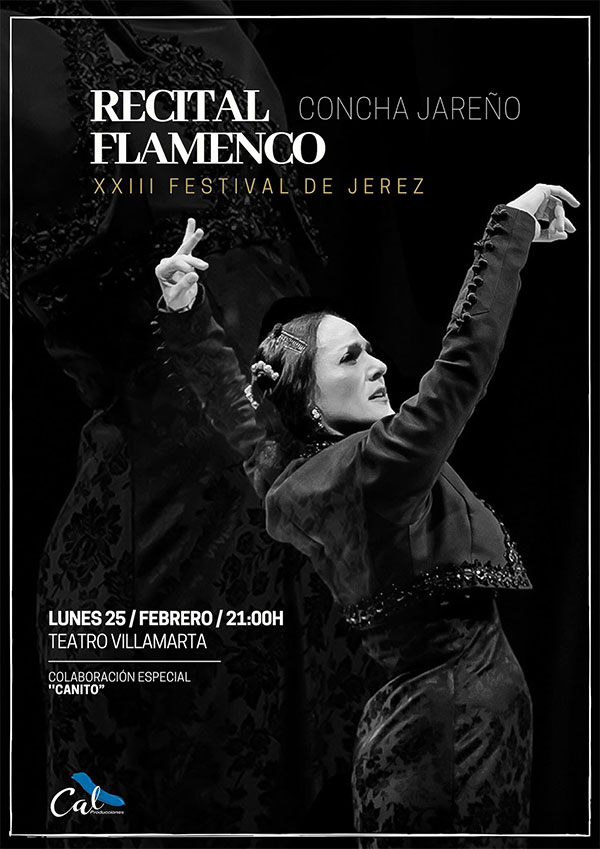 El ‘Recital flamenco’ de Concha Jareño comenzará con tangos. Por guajiras la bailaora utilizará su abanico y un vestido inspirado en la Cuba colonial para dibujar estampas flamencas llenas de feminidad y coqueteo. Luego vendrán malagueñas, martinetes, abandolaos y bulerías para finalizar por seguiriyas y soleá. Éste último palo con bata de cola y mantón.