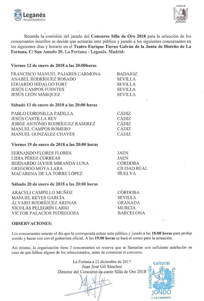 Ya se conocen los cantaores y cantaoras* seleccionadas para la participación en las fases de clasificación del prestigioso concurso, el más importante de la Comunidad de Madrid y de los más importantes a nivel nacional.