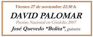 Este fin de semana la Sala García Lorca recibe al gaditano David Palomar -viernes 28- y al madrileño Paco del Pozo -sábado 29-