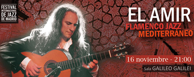 Dentro del Festival Internacional de Jazz de Madrid se presenta el guitarrista flamenco EL AMIR con su espectáculo Flamenco Jazz Mediterráneo en la Sala Galileo Galilei de Madrid.