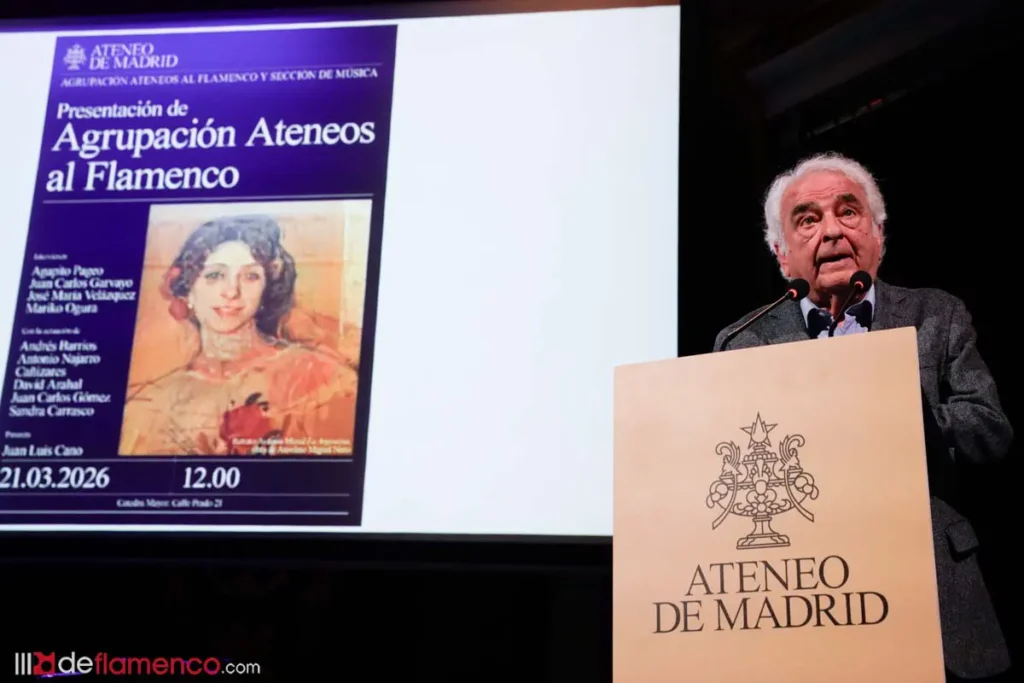 El sábado 21 de marzo de 2026, el Ateneo de Madrid vivió uno de esos momentos fundacionales que merecen quedar en la memoria flamenca de la ciudad. Con la sala Cátedra Mayor completamente llena, quedó constituida oficialmente «Ateneos al Flamenco», una agrupación que nace con la vocación de hacer del flamenco una presencia estable, rigurosa e independiente dentro de la institución cultural más antigua de España.