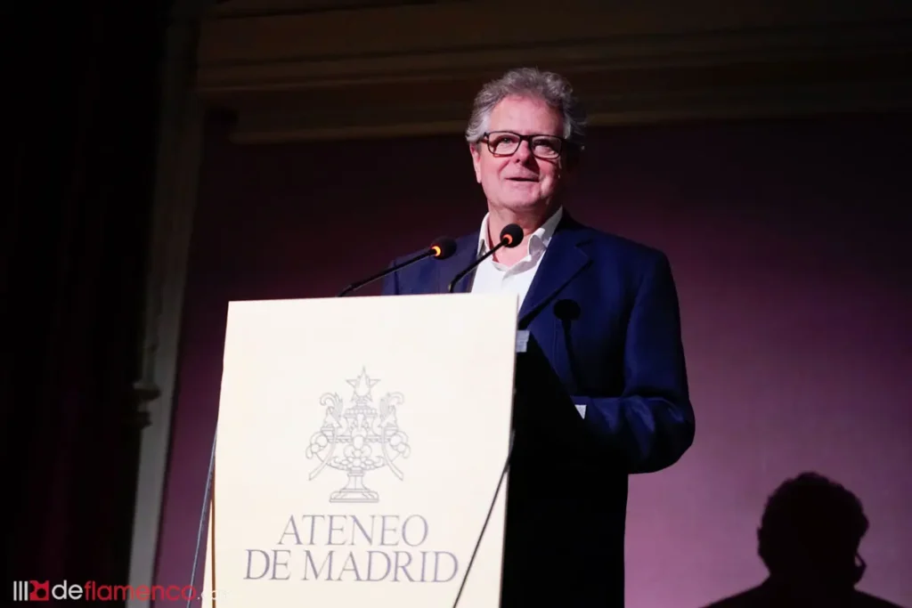 El flamencólogo José María Velázquez-Gaztelu ofreció un recorrido por la presencia —discontinua pero significativa— del flamenco en el Ateneo a lo largo de su historia. El hito más remoto rescatado fue la visita de Enrique Morente y Manolo Sanlúcar el 5 de febrero de 1970, cuando ambos artistas irrumpieron en la institución acompañando una conferencia de Manuel Ríos Ruiz. Desde entonces, la relación fue creciendo hasta consolidarse a partir de 2022 con los ciclos vinculados al Festival Suma Flamenca de la Comunidad de Madrid. Velázquez-Gaztelu cerró su intervención con una convicción que resume bien el espíritu de la nueva agrupación: el flamenco nos hace mejores personas.