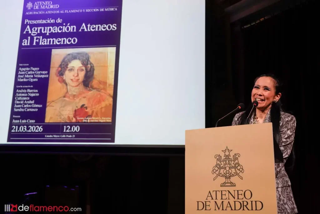 La secretaria de la agrupación Mariko Ogura encarnó en su propio discurso uno de los argumentos centrales del proyecto: el flamenco es un arte sin fronteras. Nacida en Japón y llegada a España por amor a este arte, Ogura lleva décadas dedicada a su promoción y difusión. Su intervención fue la de alguien que no habla del flamenco desde fuera, sino desde dentro, con la autoridad de quien ha construido una vida entera a su servicio. El flamenco, insistió, es una manifestación cultural y artística que pertenece a quien lo siente, sin importar el lugar de origen.