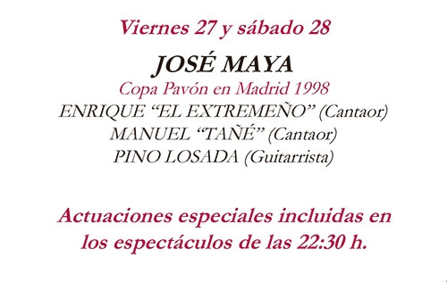 José Maya Serrano, joven bailaor que nace en el seno de una familia gitana de artistas: pintores, actores, y escritores. Antepasados de él es la histórica bailaora Fernanda Romero y el cantaor Rafael Romero “El Gallina”. También esta emparentado con los insignes pintores Antonio Maya y Jerónimo Maya.