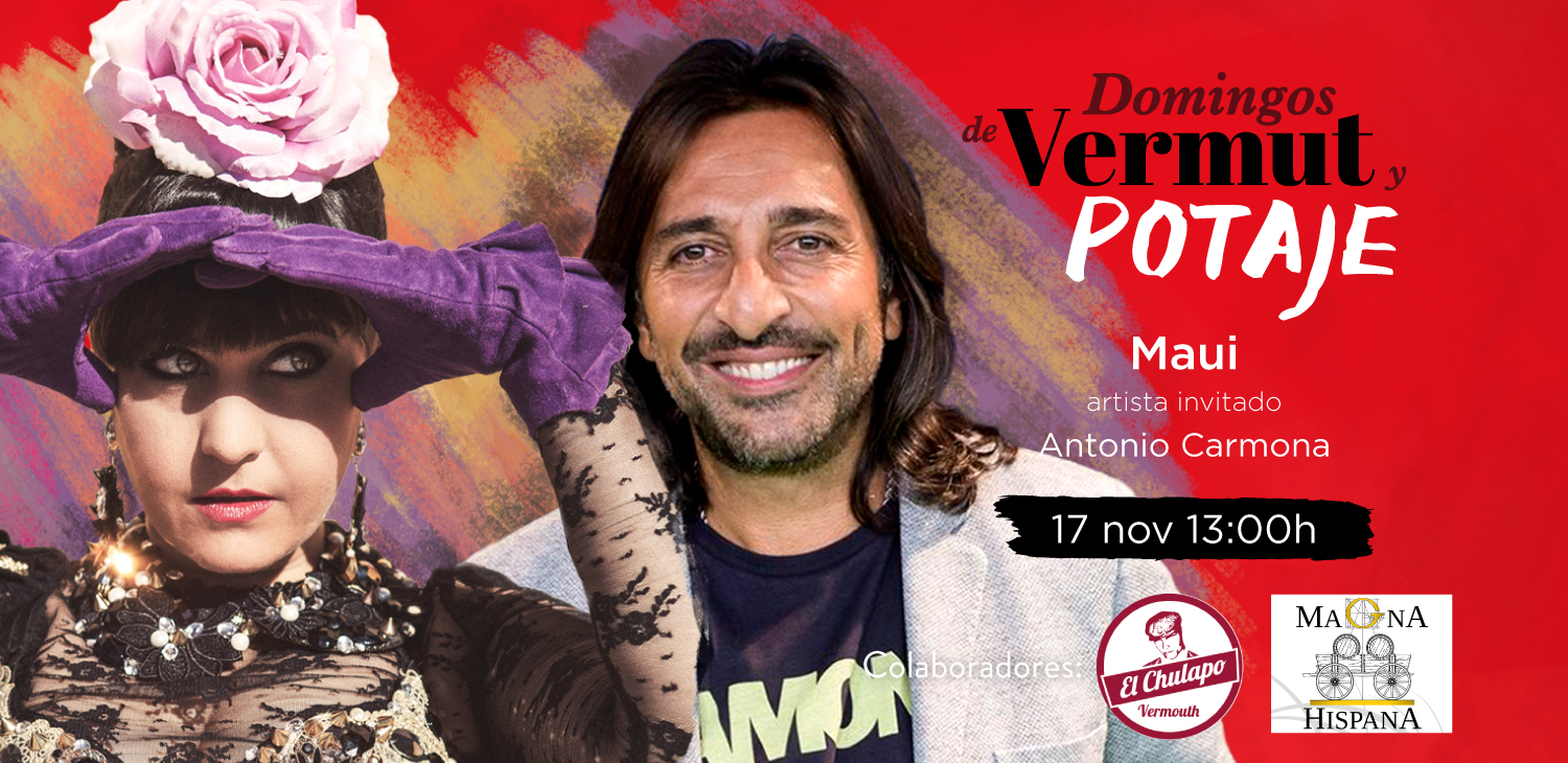 DOMINGO 17, a las 13h – DOMINGOS DE VERMUT Y POTAJE CON MAUI Y ANTONIO CARMONA que será el invitado especial encargado de poner el laurel a la olla gitana que la artista de Utrera, sobrina de Bambino, con tanto arte cocina en esta segunda temporada. Teatro, música, repentismo, pellizco y palabra con el potaje como protagonista. Un plan tan castizo como la hora del vermut se une a la tradición flamenca del potaje gitano en una fiesta que termina en el patio de butacas, donde se bendice el guiso que se reparte entre el público.