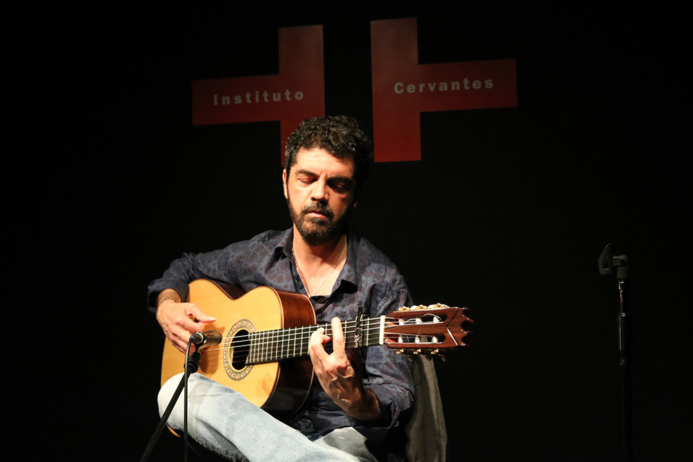 Lleno total en el auditorio del Instituto Cervantes de Tokio para escuchar al guitarrista José Carlos Gómez presentar su último disco, Origen.