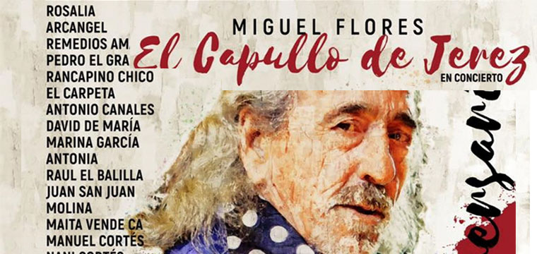 El cartel viene cargado de significativos artistas flamencos, amigos y compañeros de profesión como Arcángel, Remedios Amaya, Antonio Canales, Rancapino Chico, Pedro el Granaíno, El Carpeta, … junto a otros artistas más cercanos al pop o flamenco pop como David de María, Marina García, Maita Vende Cá, Nani Cortés, destacando la presencia de la vertiginosa estrella mundial Rosalía que también quiso estar presente en el homenaje a Miguel Flores.