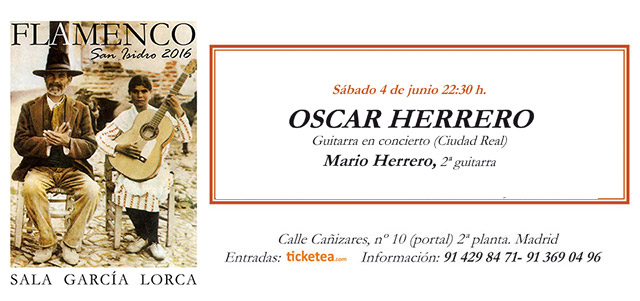 El sábado 4 de junio Oscar Herrero ofrecerá un recital de Guitarra Flamenca en concierto, contando como segunda guitarra a Mario Herrero.