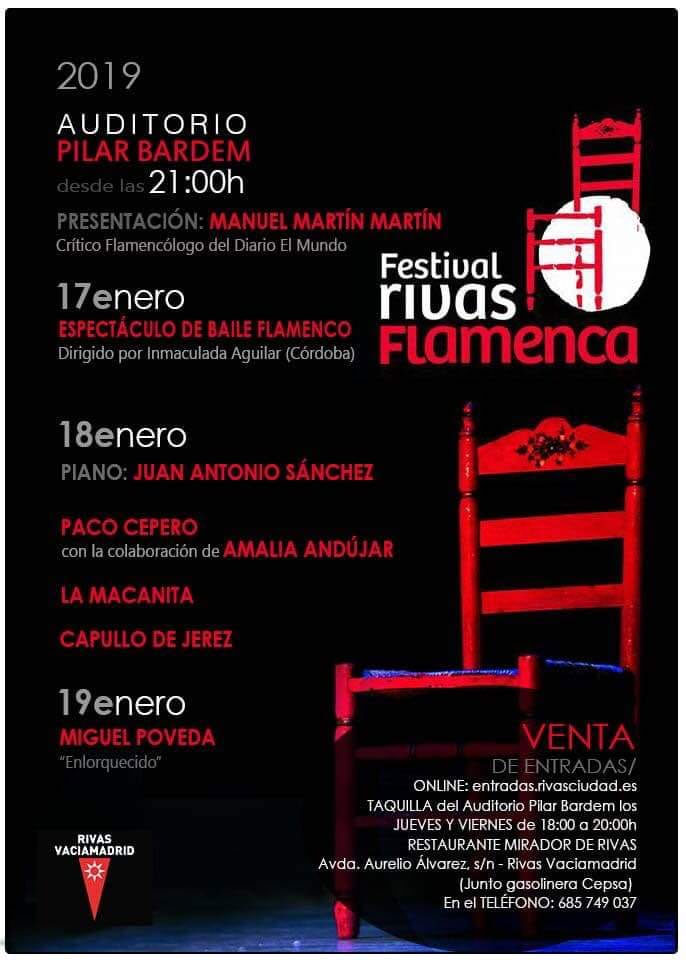 Los días 17, 18 y 19 de enero la ciudad de Rivas Vaciamadrid (Madrid) celebra el Festival Rivas Flamenca con todas las entradas agotadas desde finales de año.