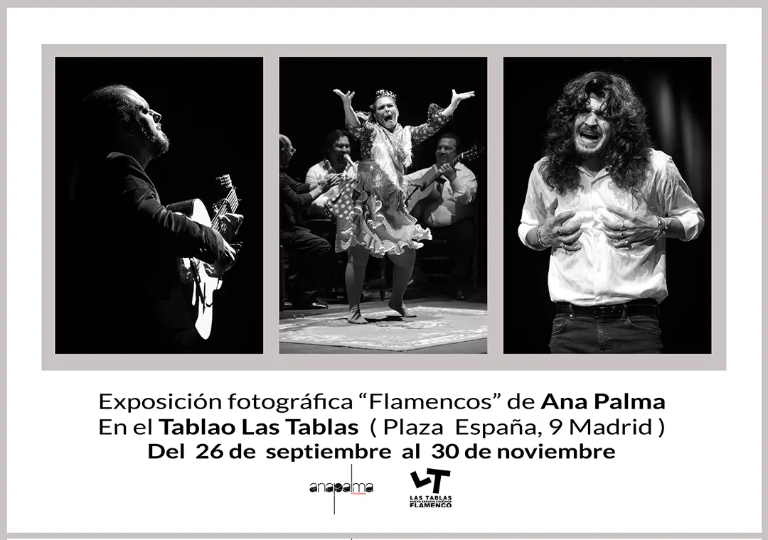 La fotógrafa de Barcelona Ana Palma presenta Exposición fotográfica «Flamencos» en Madrid, del 26 de septiembre al 30 de noviembre en el tablao flamenco Las Tablas de Madrid.