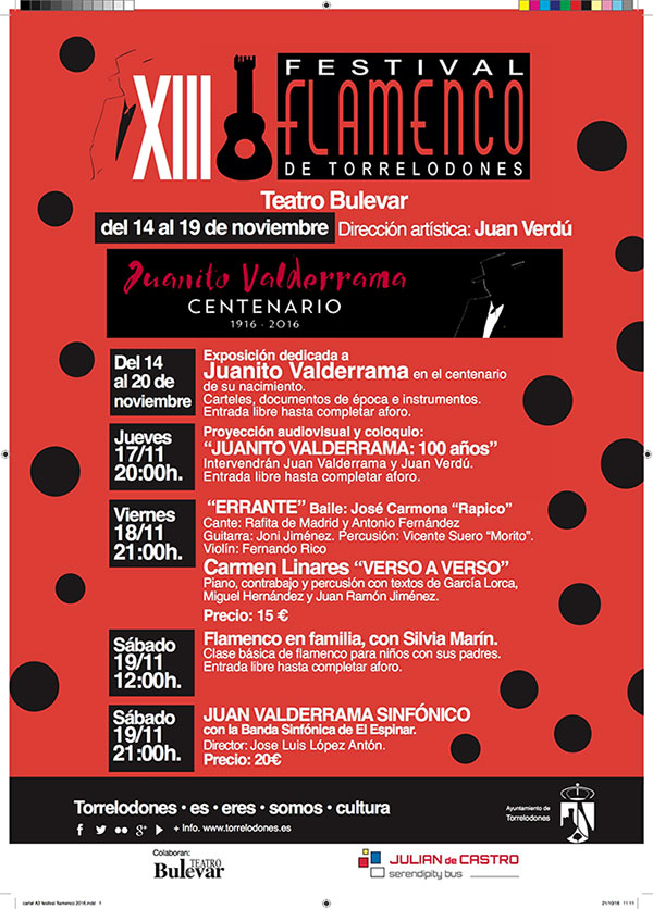 En el centenario del nacimiento de Juanito Valderrama, el teatro Bulevar acogerá una exposición con cartelería, discografía y objetos personales cedidos por la familia Valderrama, contará también con la proyección de documentales y un coloquio sobre su figura de la mano de su hijo Juan Valderrama y del director de festival Juan Verdú.