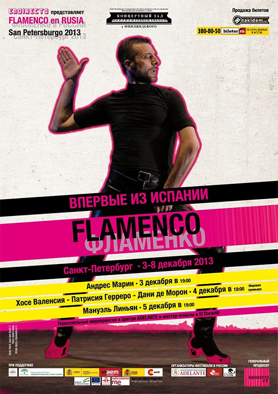 El Festival Flamenco en Rusia-San Petesburgo 2013 cuenta con el apoyo del Instituto Andaluz del Flamenco, el Ministerio de Educación Cultura y Deporte, la Embajada de España en Moscú, el Instituto Cervantes de Moscú, RNE-Radio Exterior y Andrés Marín Flamenco Abierto.