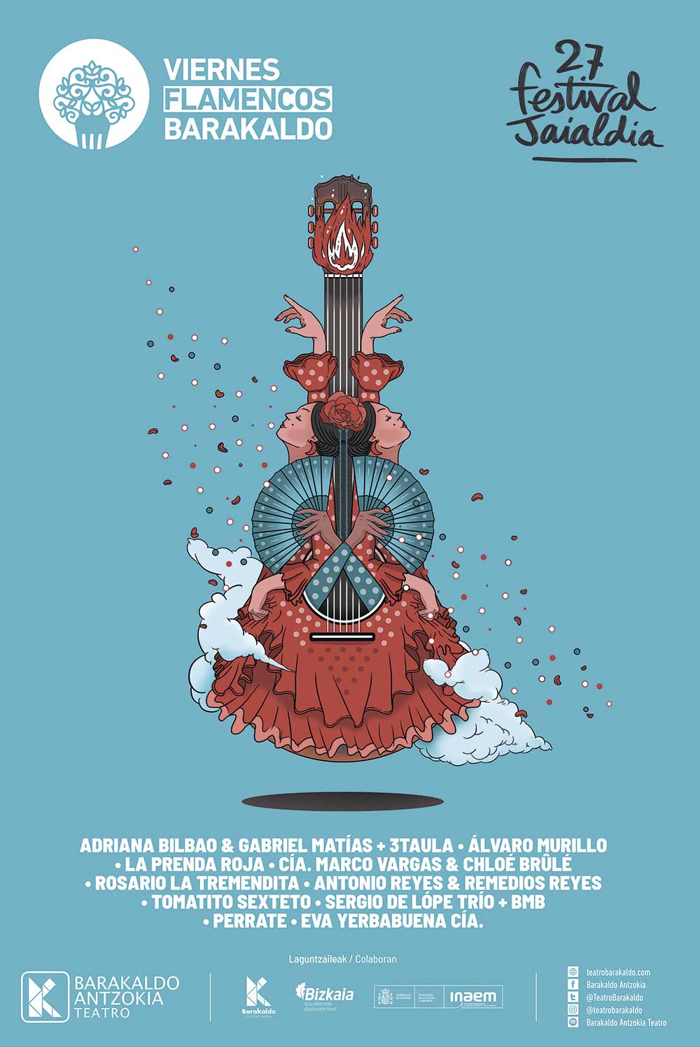 El Festival Viernes Flamencos celebra su 27 edición en los viernes, desde el 22 de septiembre hasta el 10 de noviembre con 8 espectáculos que serán estreno en Euskadi. Artistas tan importantes como Tomatito, Marco Vargas, Chloé Brûlé, Perrate, Eva Yerbabuena o Sergio de Lope. El Festival contará con actividades paralelas como un taller de baile flamenco intergeneracional, proyecciones, presentaciones, encuentros con artistas…