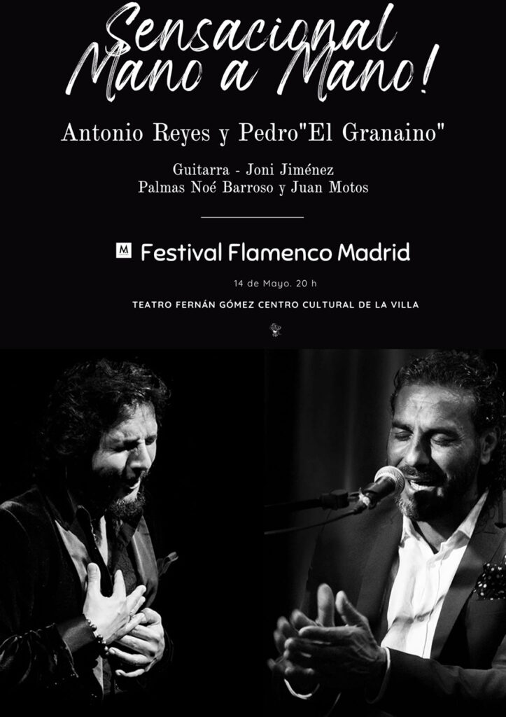 Este centro también será testigo de uno de los espectáculos que marcará esta VI edición del Festival Flamenco Madrid: el mano a mano entre los cantaores Antonio Reyes y Pedro El Granaíno, en el que ambos capean el cante. Los cantaores vivirán esta noches excepcional y única acompañados de la guitarra de Joni Jiménez y de las palmas de Juan Motos y Noé Barroso, y una Sala Guirau abarrotada.