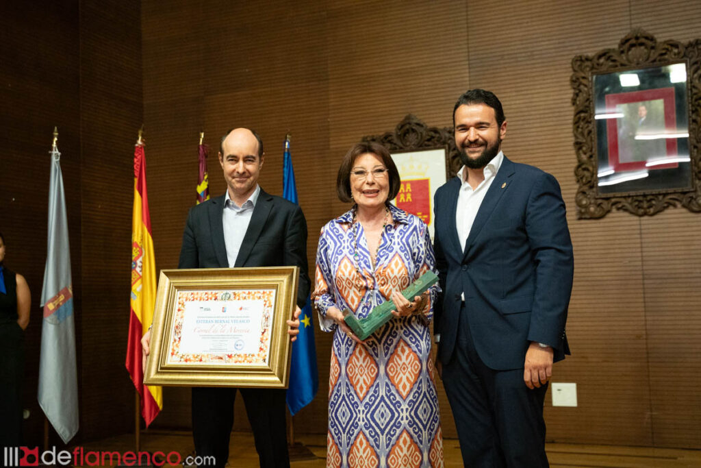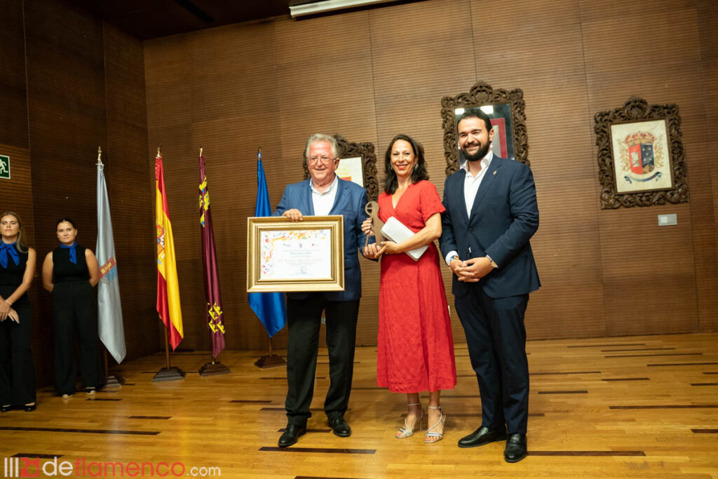 Si un nombre no podía faltar dentro de estas distinciones era el de ‘Esteban Bernal Velasco’, “cuyo tesón y valentía hizo posible este Festival”, subrayó Zapata. Precisamente, de su espíritu valiente surgió la relación del certamen unionense con el Corral de la Morería, institución que ha sido merecedora de este galardón. “Este premio es fundamentalmente un reconocimiento a mis padres, Blanca y Manuel del Rey”, afirmó el director del tablao madrileño, Juan Manuel Del Rey, que los definió como “enamorados de las artes, la cultura y el flamenco”. Blanca del Rey, que le acompañó, no dejó pasar la oportunidad para alabar el arte del hijo del fundador, Esteban Bernal Aguirre, creador del trofeo que ya tenía en sus manos, además de poner el título de “costaleros del Festival” a todas las personas que impulsan el Festival, en el que “Esteban puso la primera piedra”.