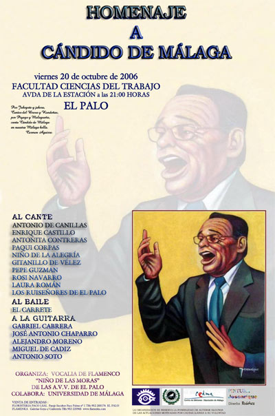 El próximo 20 de octubre se realizará un homenjae al cantaor malagueño 'Candido de Málaga' con la presencia de artistas como Antonio Canillas, Paqui Corpas, Antoñita Contreras…