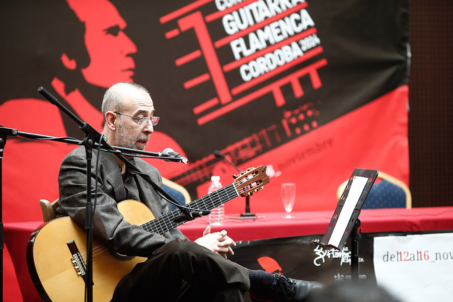 Another maestro of the six strings, Jerez guitarist Gerardo Núñez, began his talk with a moving tribute to Paco de Lucía. He spoke of his own career, and criticized the official practice of sponsoring flamenco festivals in wealthy countries outside Spain. A roundtable discussion with Cordoban guitarists José Antonio Rodríguez, Paco Peña, Merengue de Córdoba and Paco Serrano dealt with the topic «The Córdoba school of guitar».
