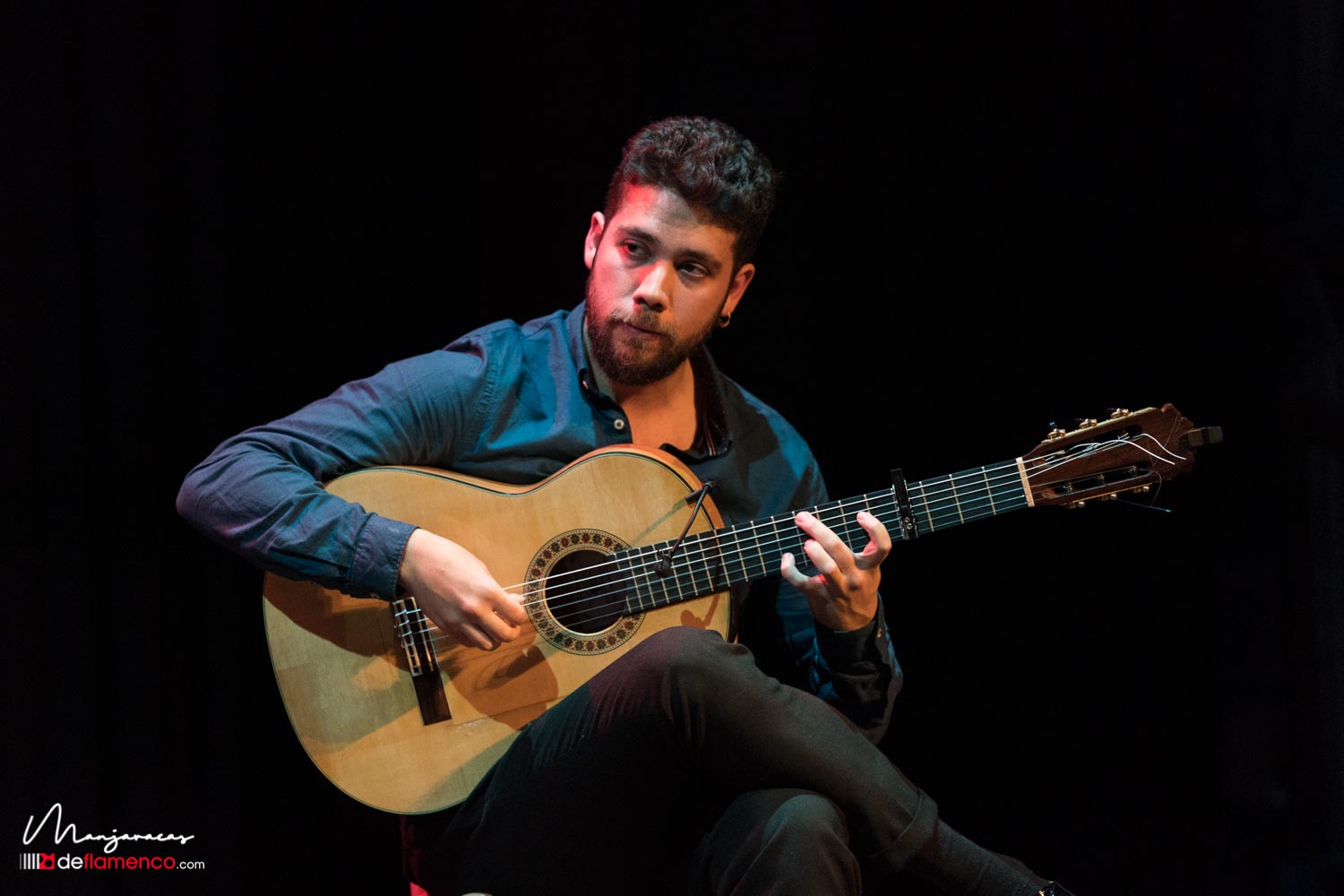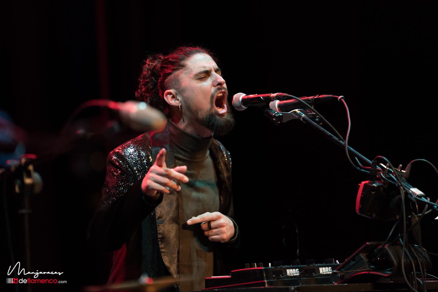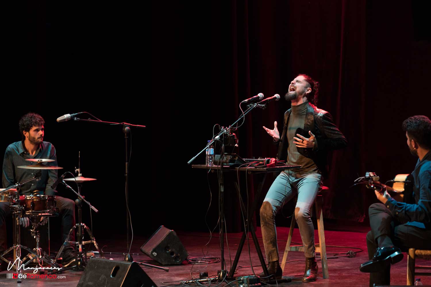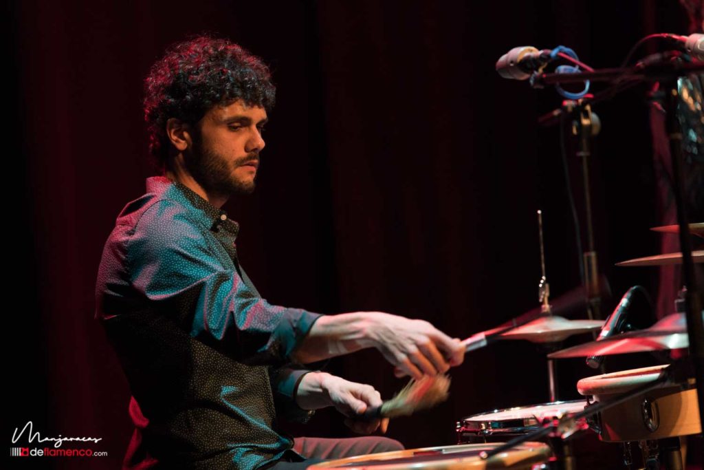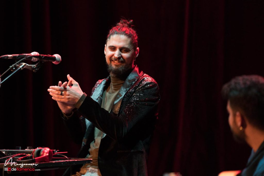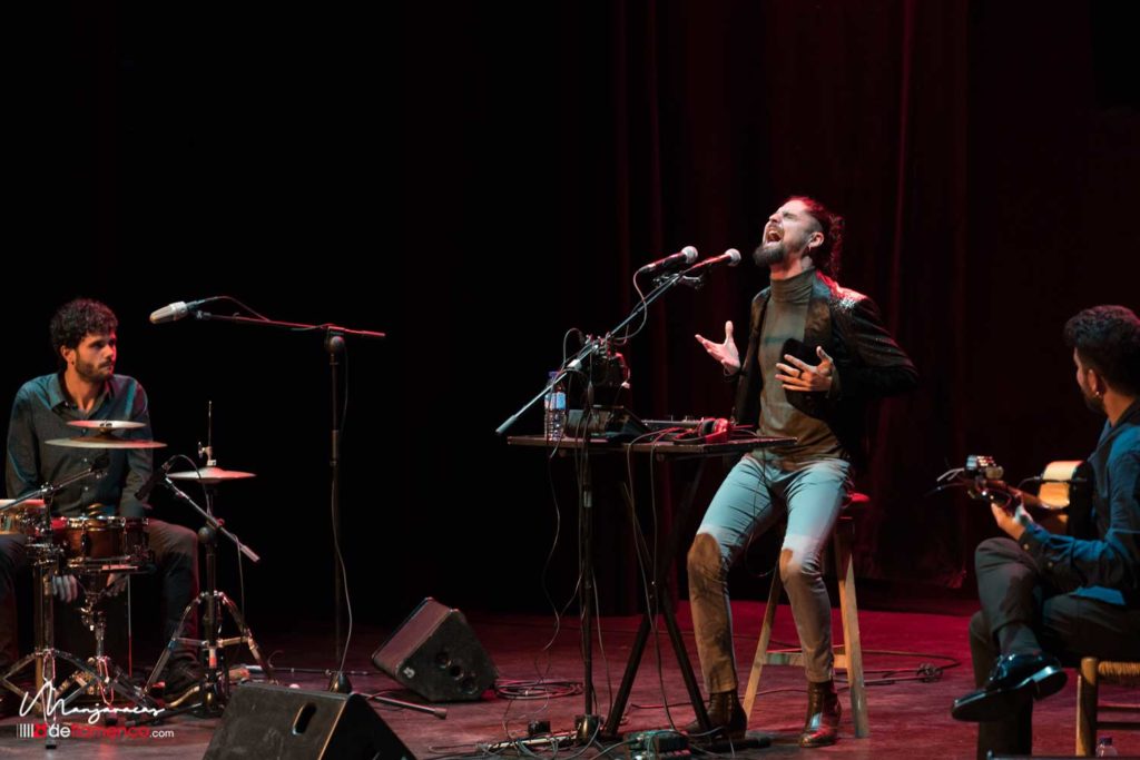 Una vez realizado el acto protocolario de la distinción flamenca la parte musical la trajo Matías López «El Mati» reciente ganador de la Lámpara Minera 2019 con su espectáculo ‘Jugando’ donde alterna la ortodoxia del flamenco desde su visión personal con las nuevas técnicas que permiten investigar y desarrollar nuevos sonidos y registros en su voz, sin alejarse del concepto del flamenco. Estuvo acompañado por la guitarra de David Caro y la percusión de Javier Rabadán. Os dejamos algunas fotografías y un video con un extracto de la minera.