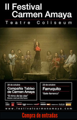 El próximo viernes 28 y sábado 29 de octubre tendrá lugar la segunda edición del Festival Carmen Amaya en el Teatre Coliseum de Barcelona con la intención de acercar al público los valores más importantes del flamenco como son la pureza, la esencia y la espontaneidad.