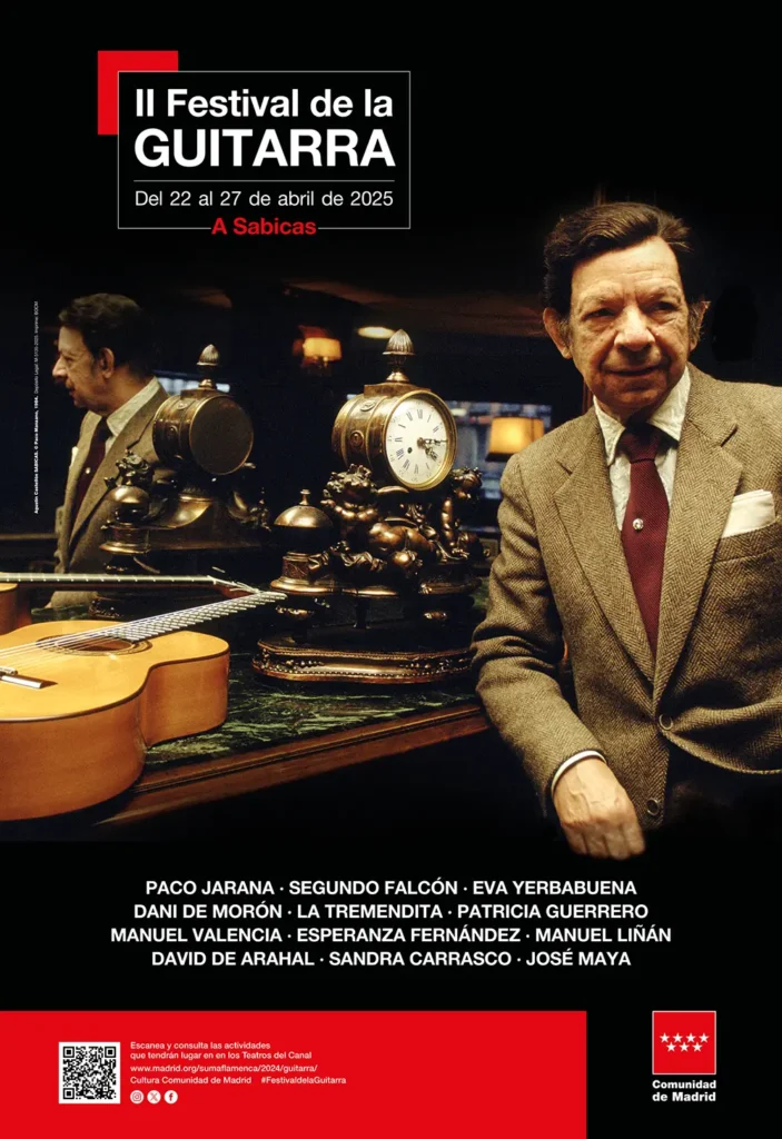 La Comunidad de Madrid celebrará del 22 al 27 de abril de 2025 la segunda edición del Festival de la Guitarra, un evento que rinde homenaje a los grandes maestros de la guitarra flamenca. Tras el éxito de la primera edición dedicada a Ramón Montoya, este año el festival estará centrado en la figura del legendario Sabicas, cuyo legado revolucionó el mundo de la guitarra flamenca.