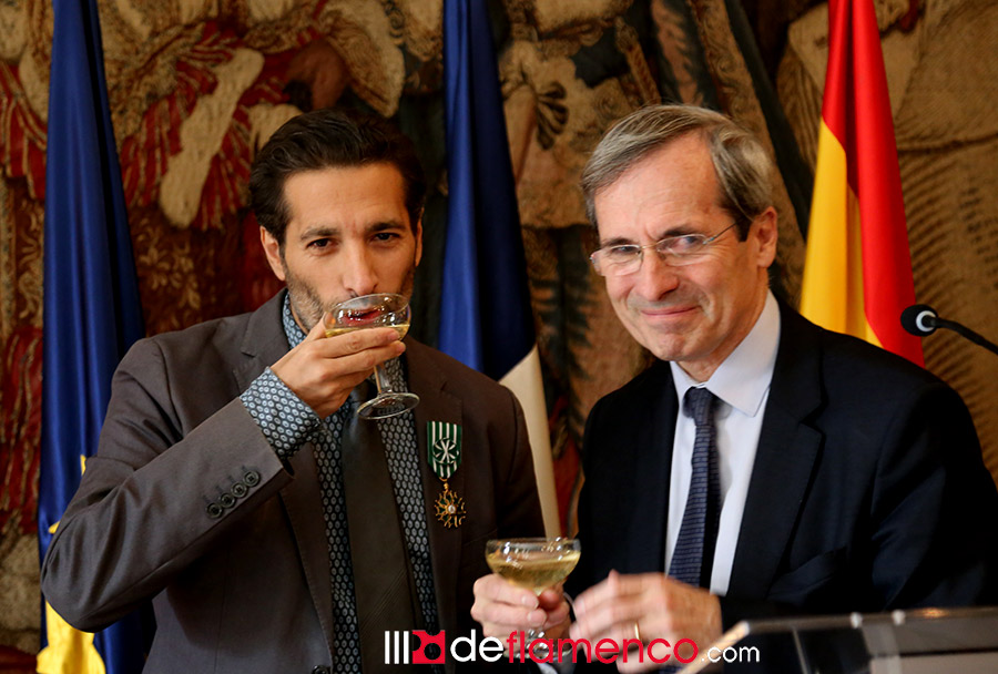 El bailaor sevillano ha recibido este viernes 15 de enero en la Embajada de Francia la «Officier de L'Ordre des Arts et des Lettres» de la República de Francia por parte del embajador de Francia en España Yves Saint-Geours.