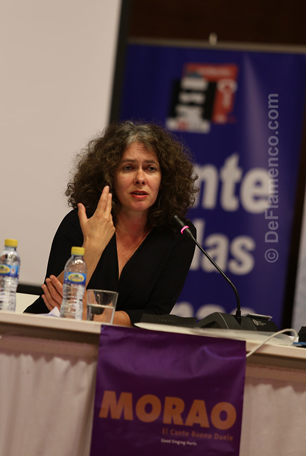 La mañana de la segunda jornada del Congreso se ha completado con la proyección del documental “El cante bueno, duele”, dirigido por Ernestina Van de Noort y Martin Van Beenen, producido por la Bienal de Flamenco Países Bajos y la NTR televisión. El documental fue grabado en 2010 y estrenado en 2011 en Holanda, y según Van de Noort, “trata de dar a conocer el flamenco en mi país”. En la realización de la cinta, ha añadido, “viajamos hasta Jérez de la Frontera, donde Moraíto Chico ejerció como anfitrión, presentándonos a su familia y enseñándonos las raíces de su arte in situ”. Sin embargo, y como consecuencia del empeoramiento del estado de salud y posterior fallecimiento de Moraíto, la película quedo inconclusa en su enfoque original, pero, reconoce su autora, que “tan sólo cambió el punto de vista, no así su finalidad”, que no era otra que difundir el flamenco en Holanda y, “enseñar algo tan hermético a priori”, pero que “se ha convertido en una conexión con otras iniciativas que se están llevando a cabo en mi país y que complementan a la Bienal de Flamenco Países Bajos -del cual Ernestina es fundadora y directora- que celebra ya su cuarta edición y reparte por cuatro sedes (Amsterdam, Rotterdam, Utrecht y La Haya)”.